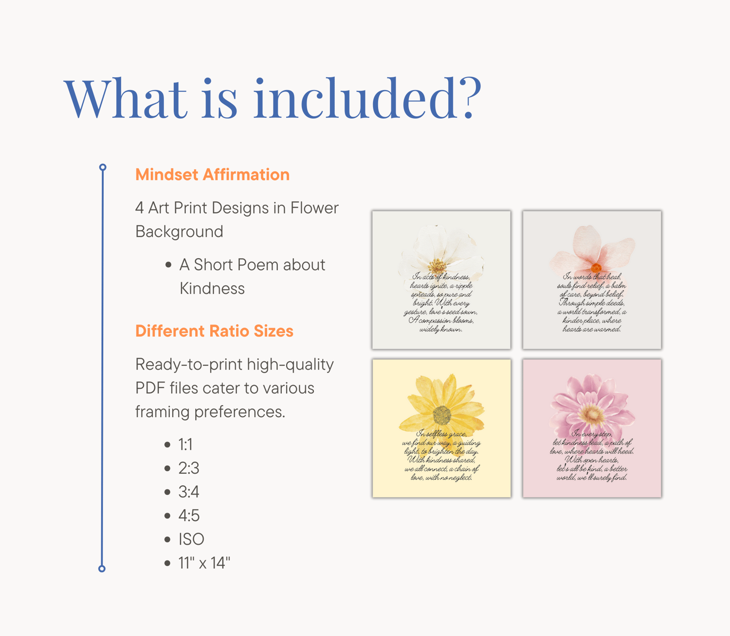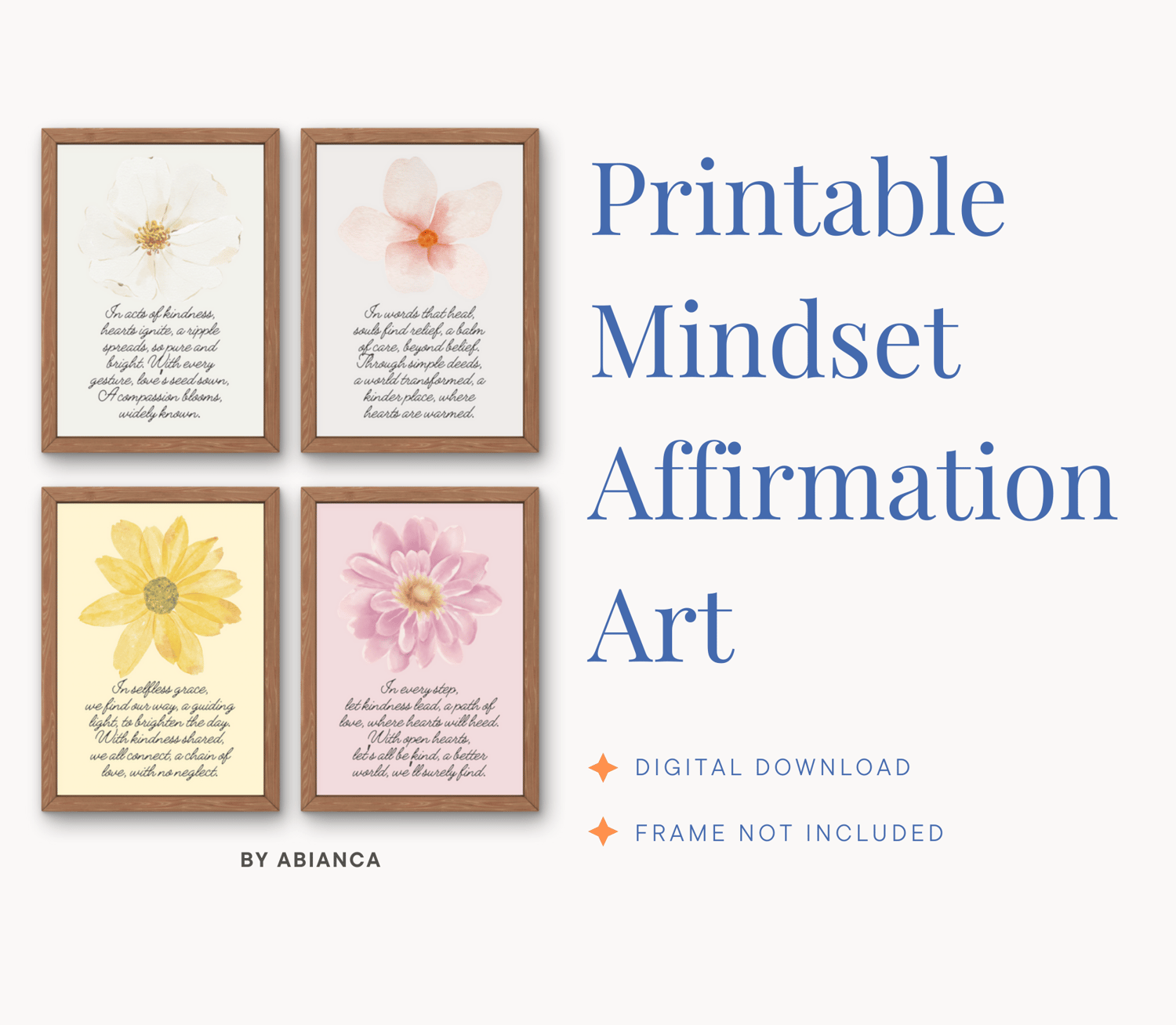 Set of 4 Printable Mindset Affirmation Art | Kindness | Digital Download