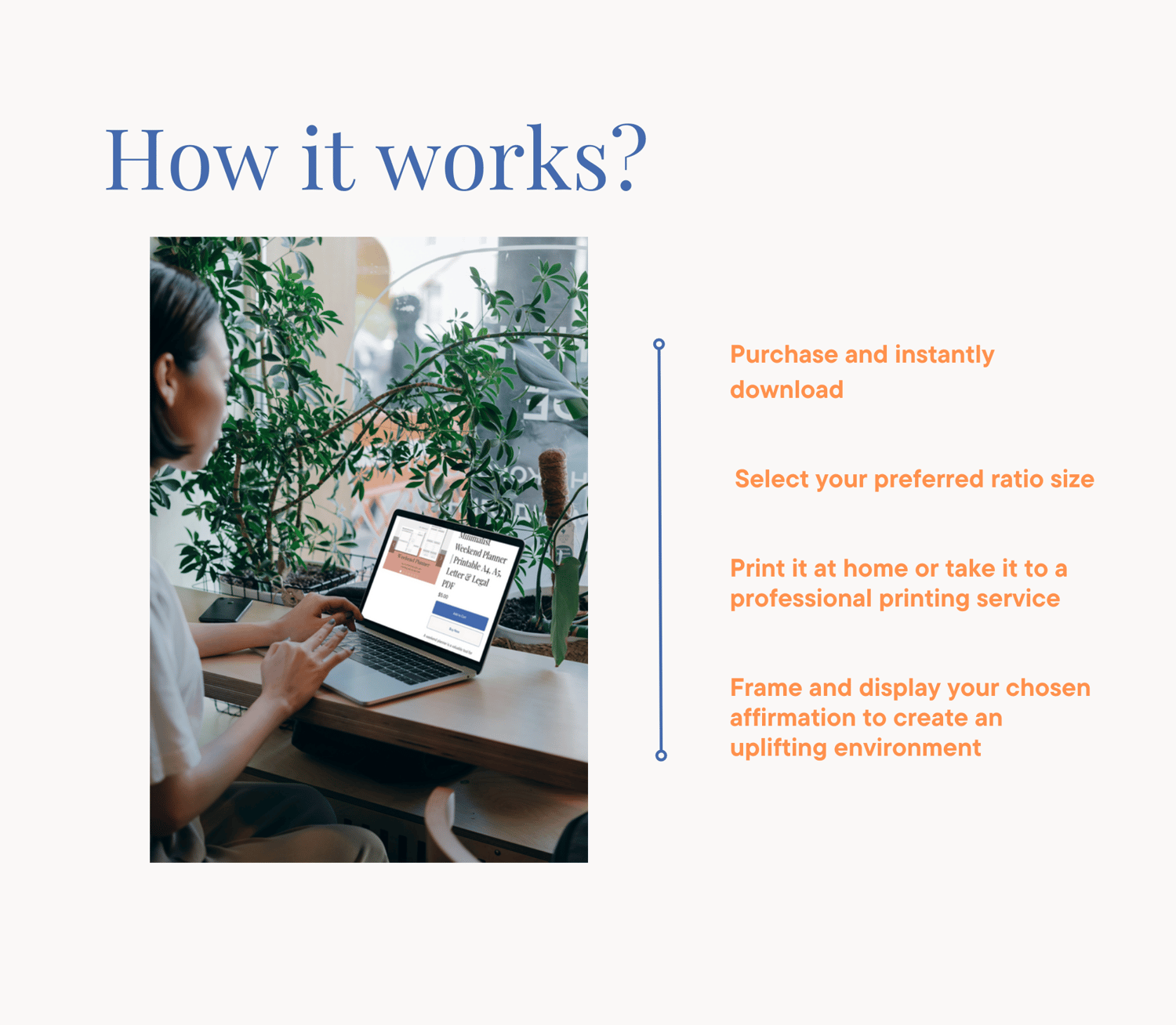 4 Positive Affirmation Wall Art Design Prints in 6 different ratio sizes each in High Quality PDF Files for Printing and a Thank You Card.
