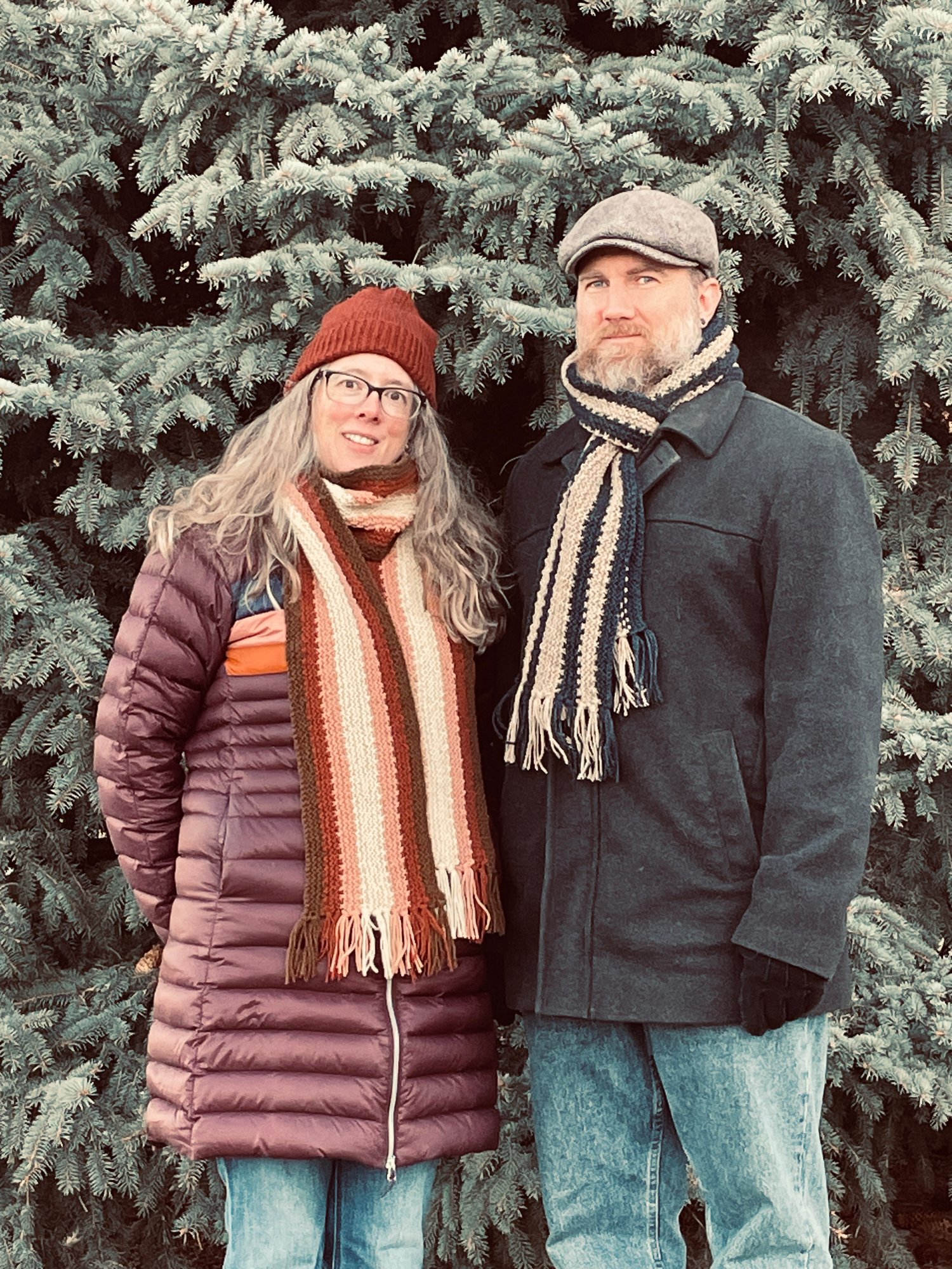I designed this scarf because I liked the retro look of the colors in a long striped motif. Scarves have always been hard for me to make because it took so long to knit the shorter rows to make up a traditional scarf. This scarf is knit sideways, starting in the middle and working out on both sides.