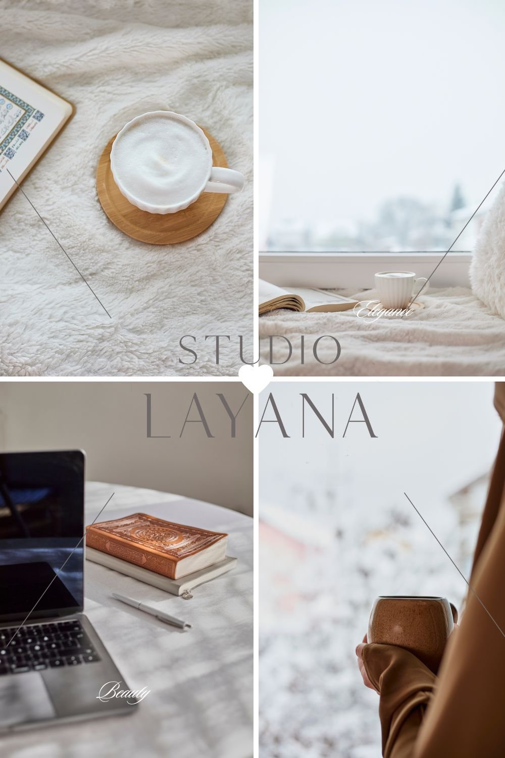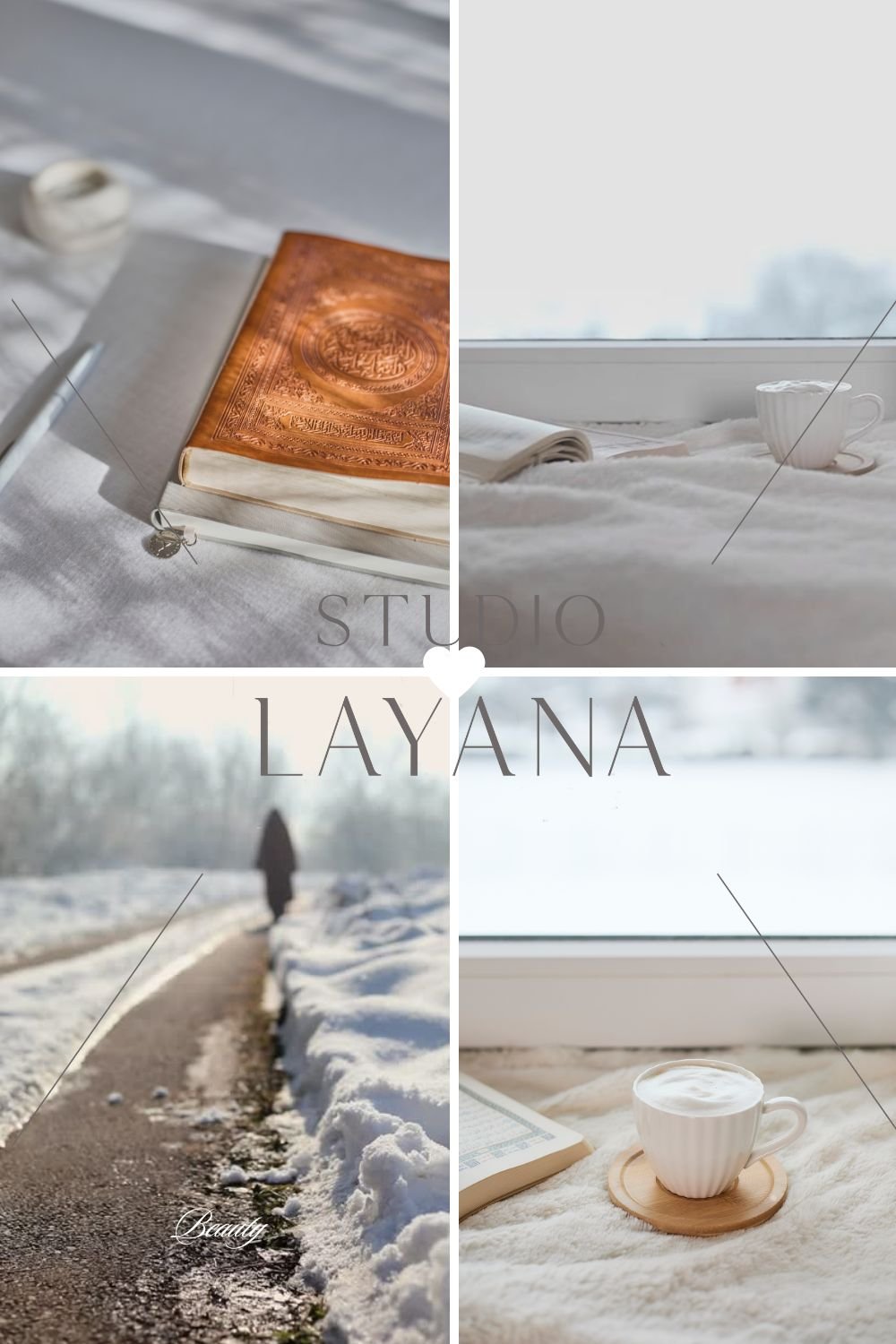 This collection captures the warmth and serenity of those moments, blending the beauty of winter with the elegance of a Muslim woman’s identity. The images feature cozy home settings, thoughtful details like Qurans, and modest clothing, all bathed in soft natural light.