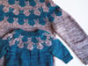 Prairie Cats Pullover is worked top down in the round with a stranded circular yoke. The body and sleeves are separated at the underarm and worked separately, in the round.