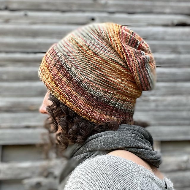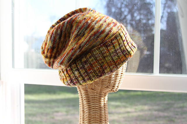 This slouchy, comfy hat is the perfect project for that one skein of sock yarn that is way too special to put on your feet. Fair warning: there is miles of stockinette stitch, so this makes for great TV, travel or zen knitting.