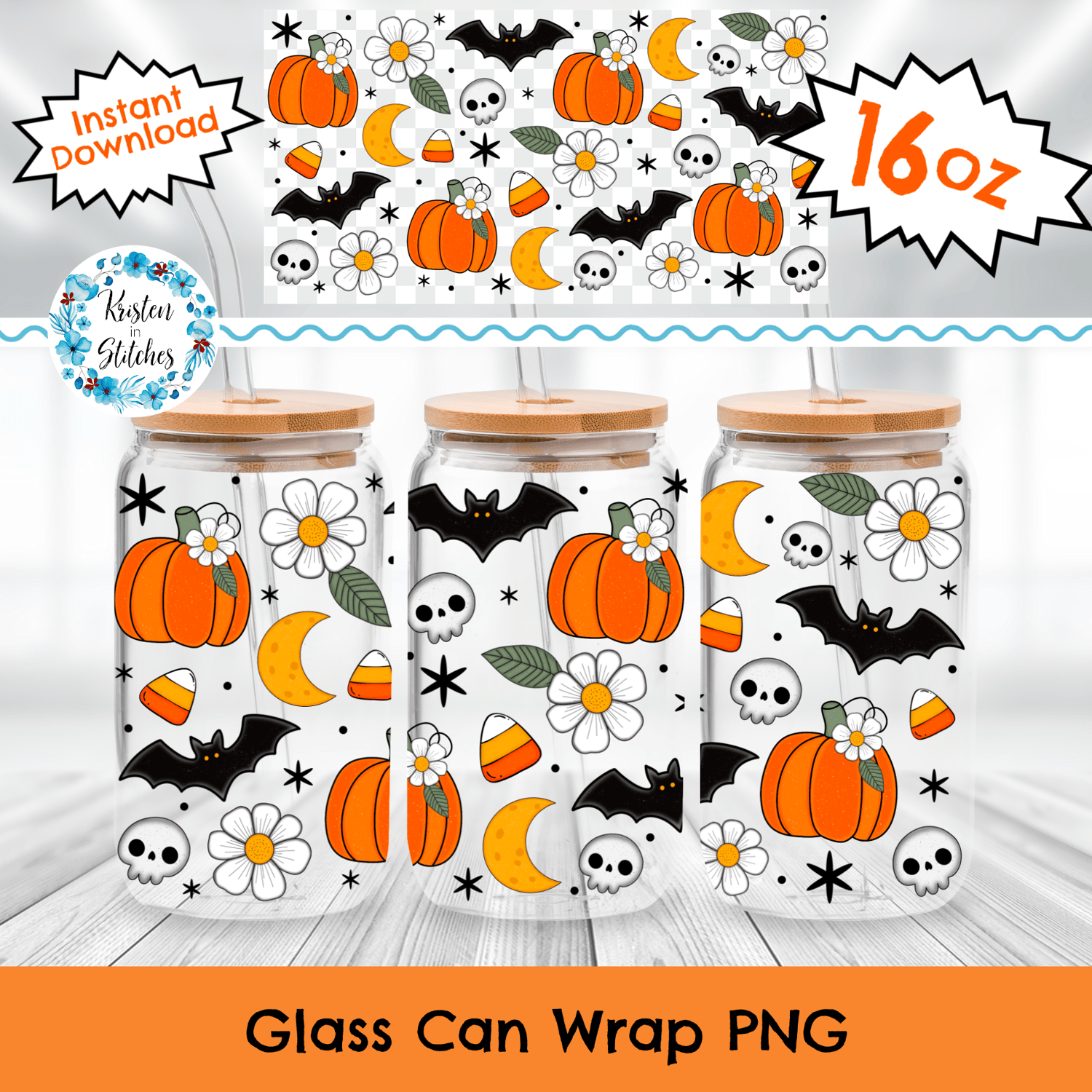 Halloween Haunts 16 oz Glass Can Wrap Transparent PNG