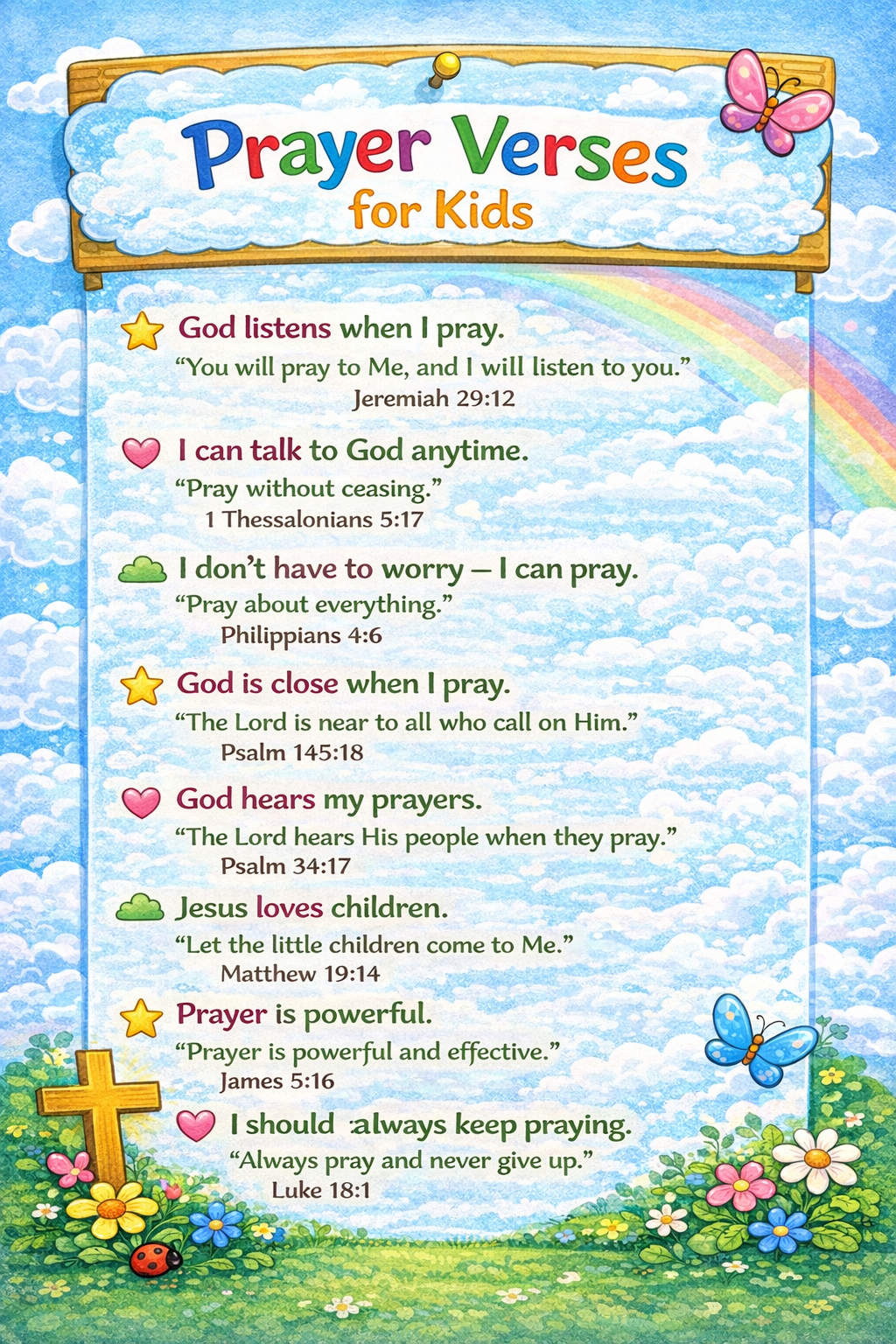 A curated collection of uplifting, scripture-based prayer verses to inspire faith, reflection, and encouragement. Ideal for personal prayer time, classroom discussion, or group reading.
