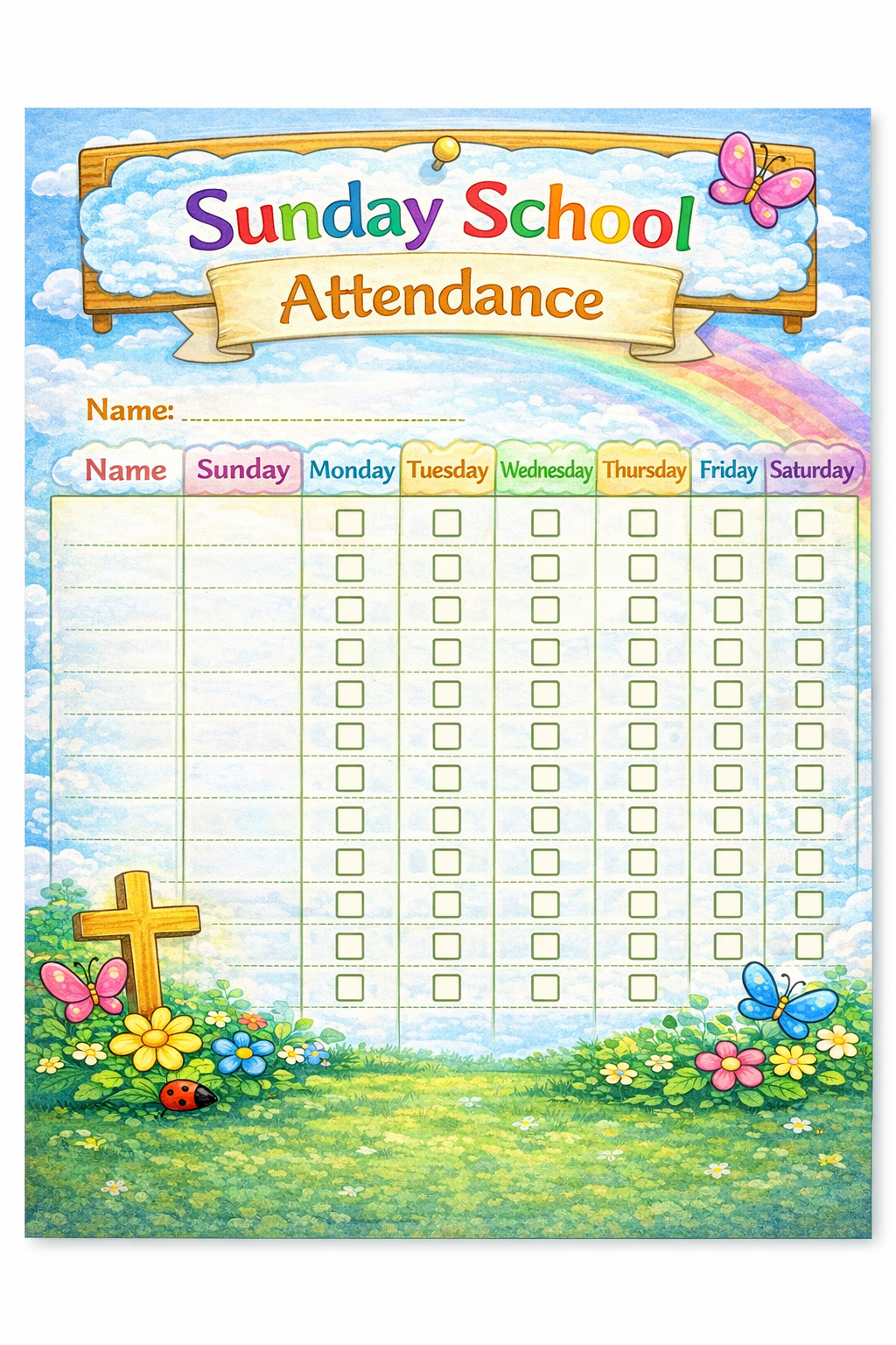 ✔ Sunday School Attendance Sheet