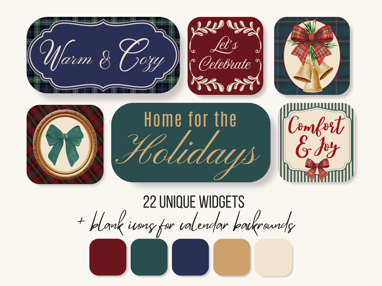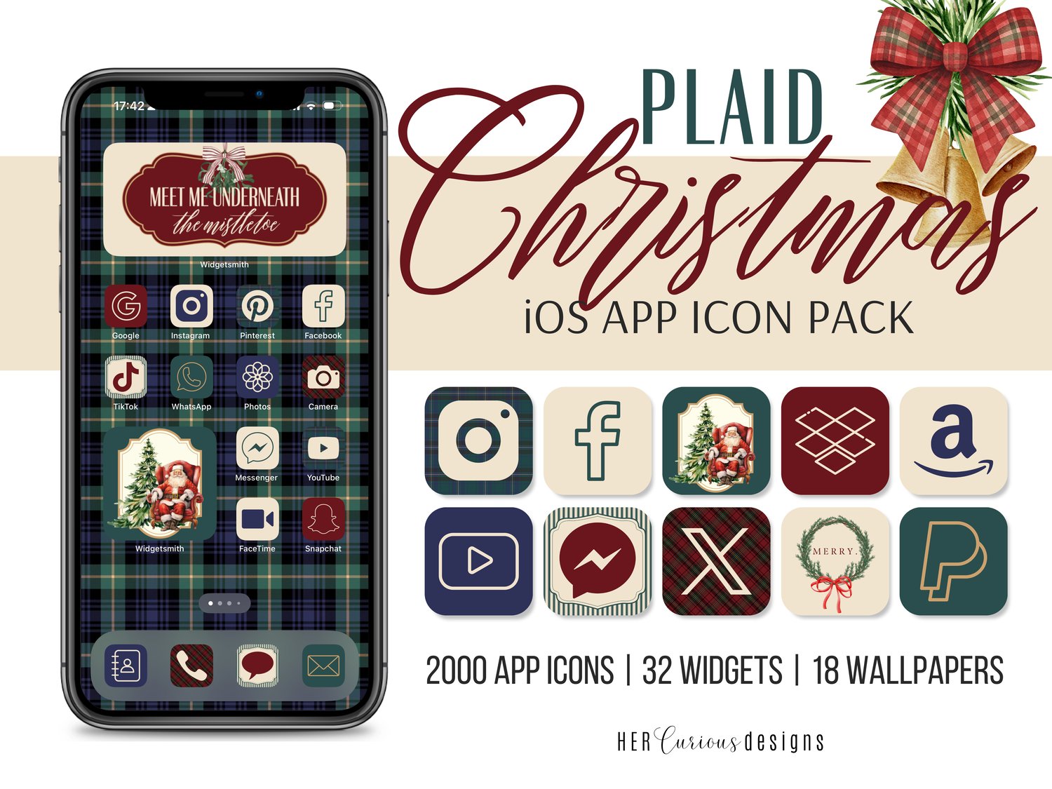 The Plaid Christmas App Icon Pack includes 2000 app icons, 22 unique widgets and 18 wallpapers.