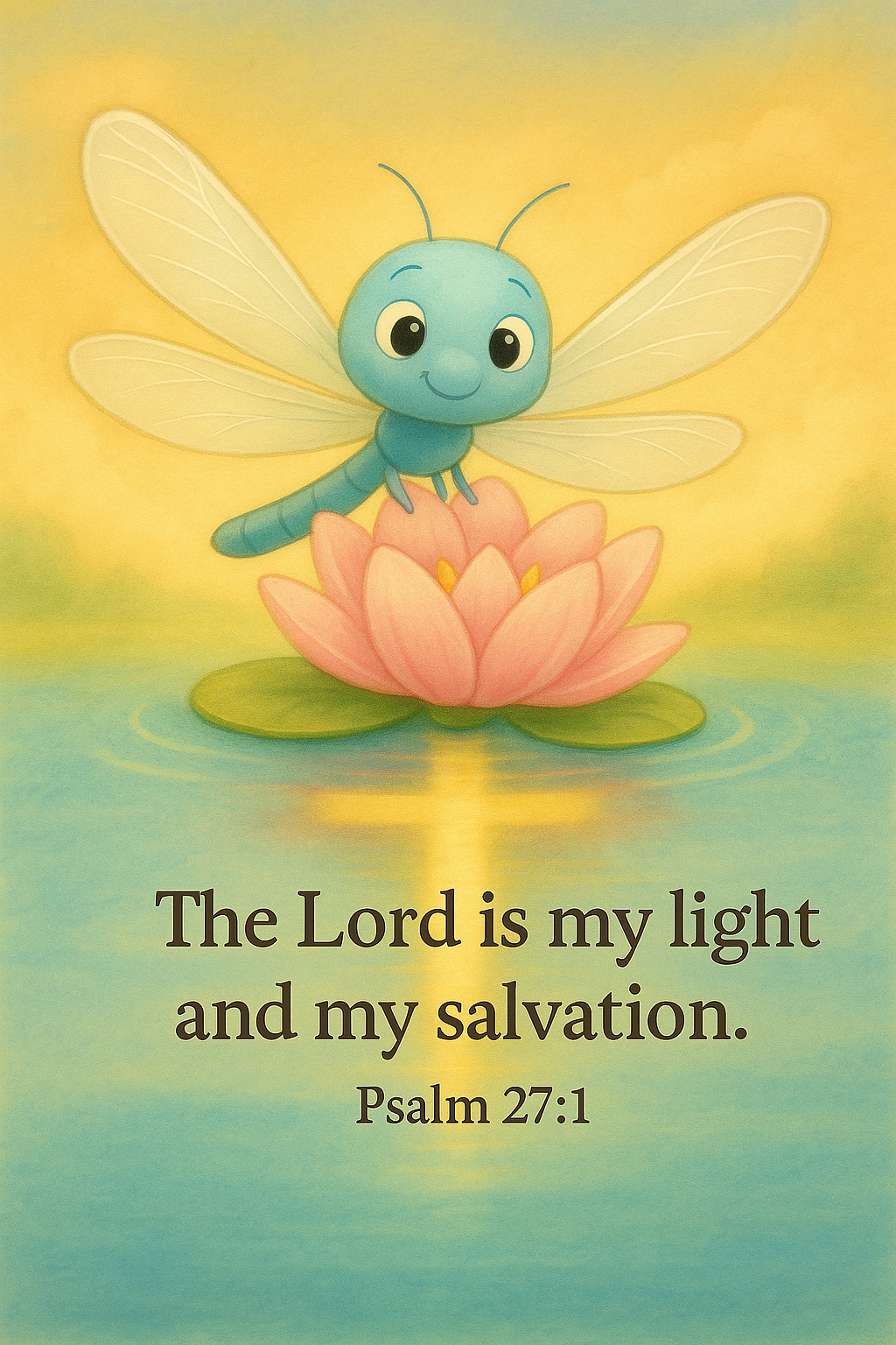 🐞🌸 Christian Kids Scripture Wall Art – Psalm 27:1 Dragonfly & Lotus Poster – Faith-Based Printable for Homeschool, Devotion & Ministry – Light & Salvation Theme