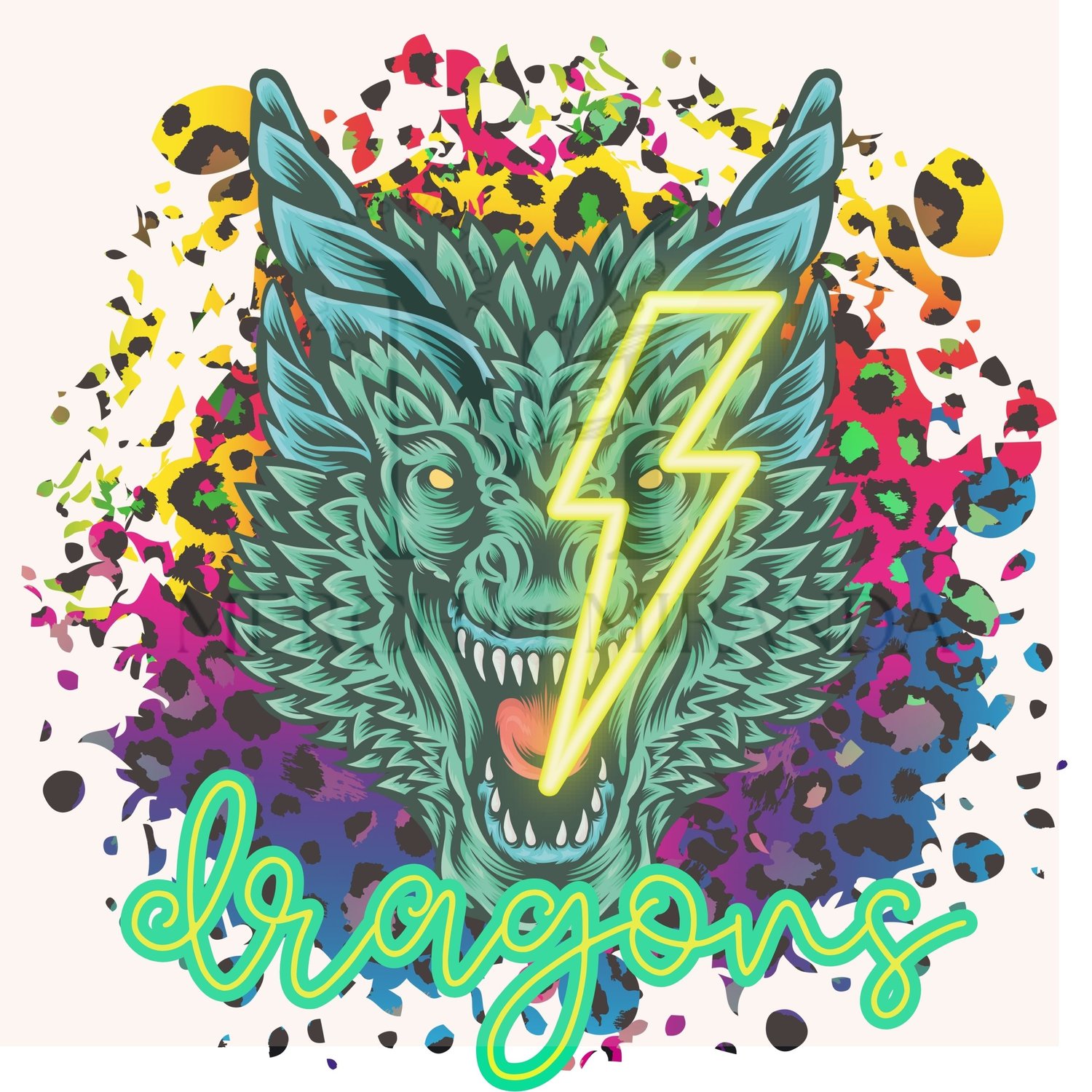 Dragon Mascot - Dragons - Neon Lightning Bolt - School Spirit - Digital Download - Leopard Print