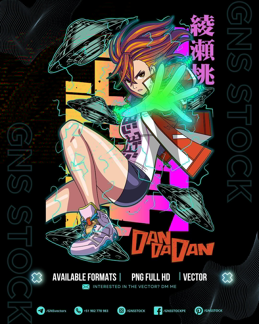 Anime Vector – Momo Ayase | Dandadan | Design for DTF, Sublimation, T-Shirts | Files: CDR, PDF, PNG, SVG