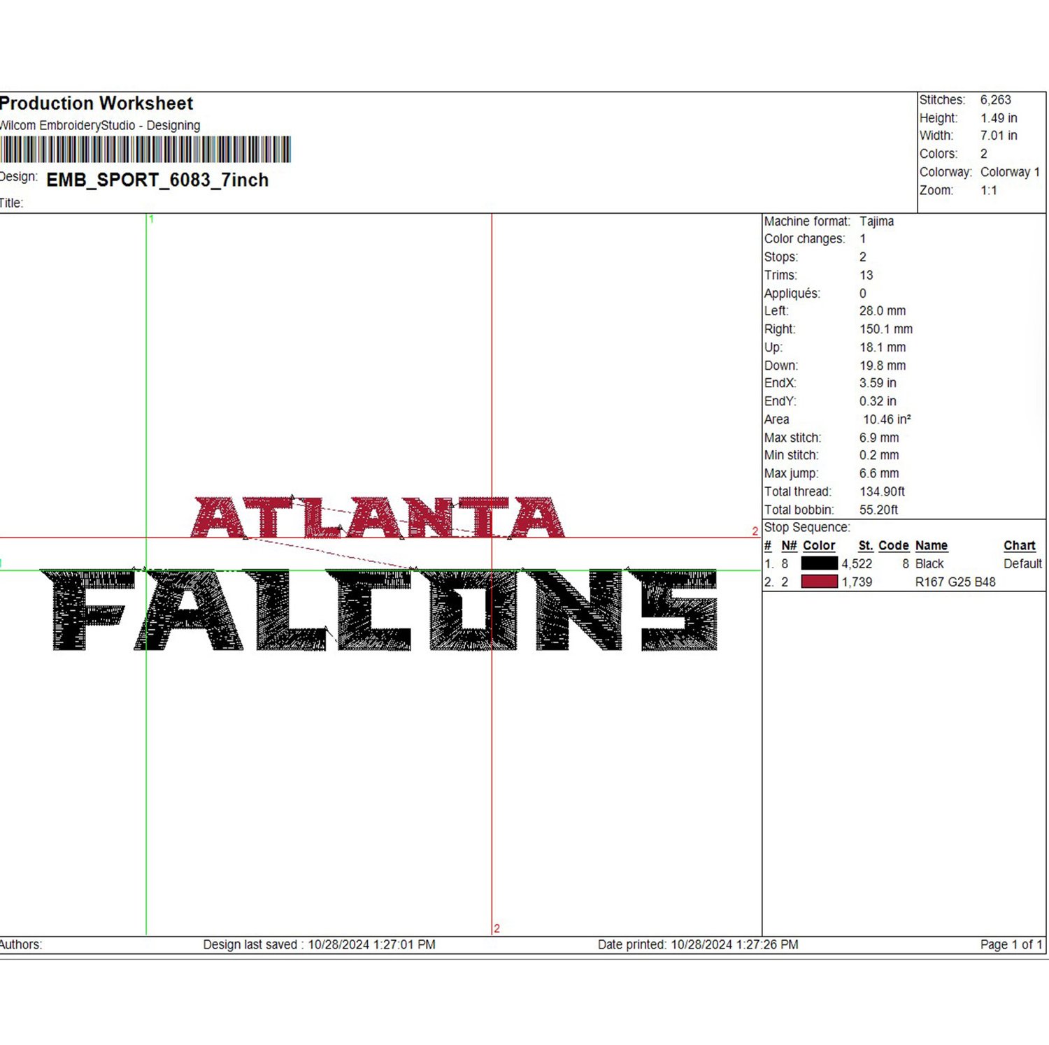 NFL Atlanta Falcons Wordmark Logo Embroidery Designs, NFL Falcons, NFL Embroidery Designs, NFL TAtlanta Falcons Machine Embroidery Design, Digital Download