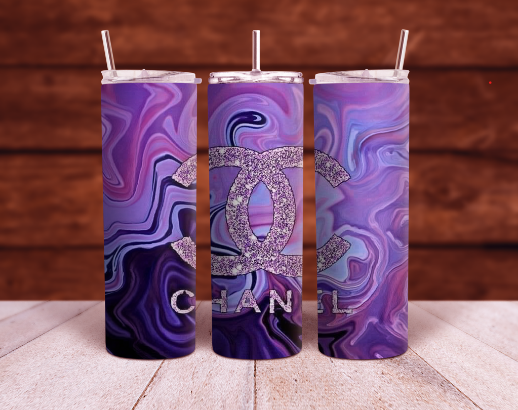 Chanel CC logo Purple marble 20oz and 30oz Sublimation Tumbler Wrap PNG