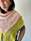 My small pink sample was knit in La Bien Aimée Merino Singles, while the larger yellow version combines Merino Singles with Alix held double.
