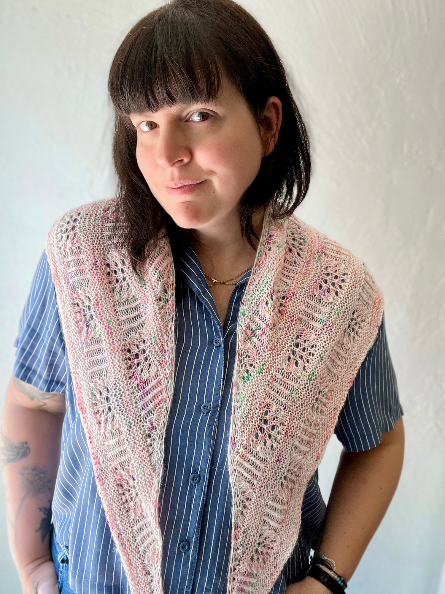 I’ve always had a soft spot for one-skein shawls: they’re quick to knit, relaxing, and somehow always find their place in our everyday lives, whether draped over the shoulders on a cool evening or wrapped around the neck for a touch of comfort and color.