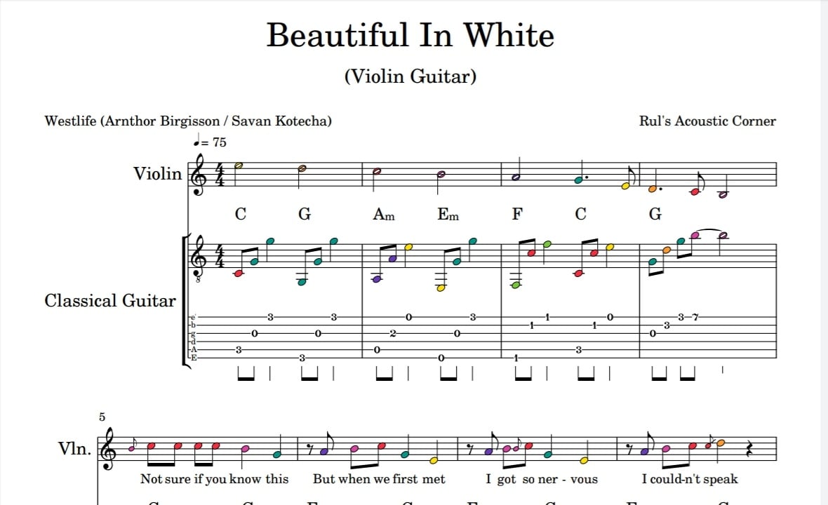 Westlife - Beautiful In White Violin Guitar Musical Notes Tabs PDF Video