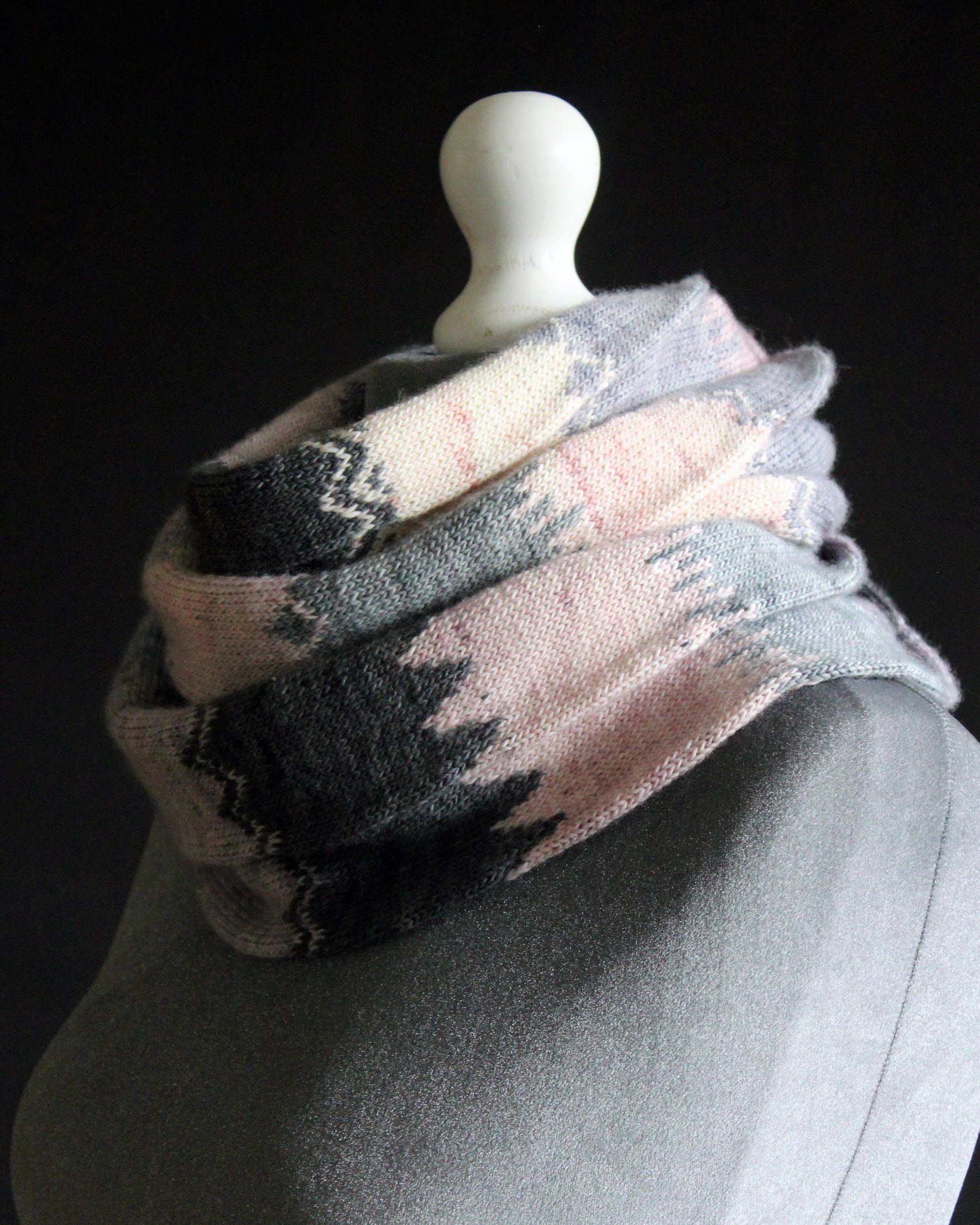 The cowl is worked in stranded/fair isle knitting. The colourwork pattern is both charted and written, with written instructions for the other rounds. As well as greyscale charts there is a page with blank charts that you can print out and colour in with your choice of colours. You will need to know how to do a provisional cast-on (I recommend the crochet cast-on) and how to graft two ends of stocking stitch together. The pattern has been tech edited and tested.
