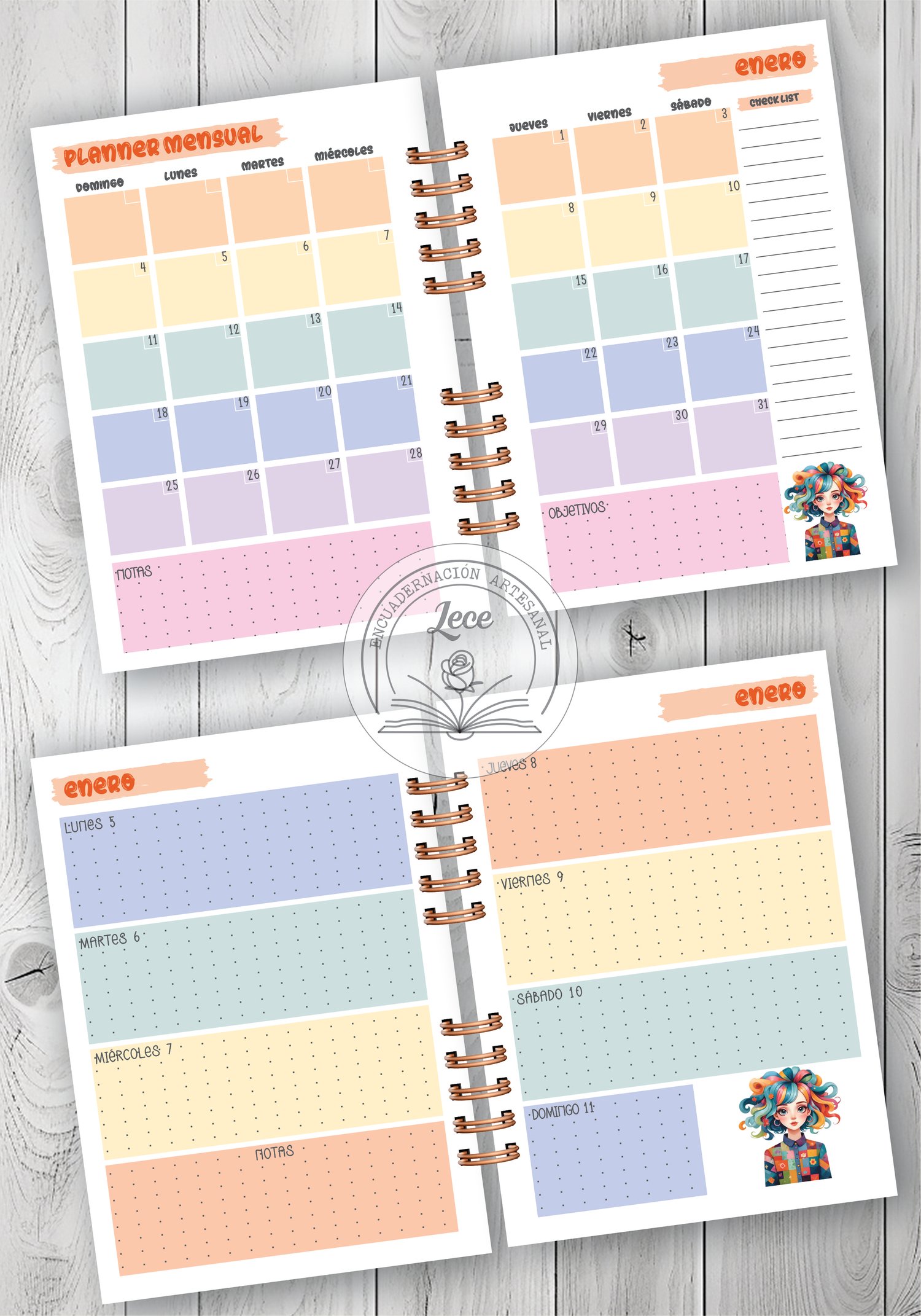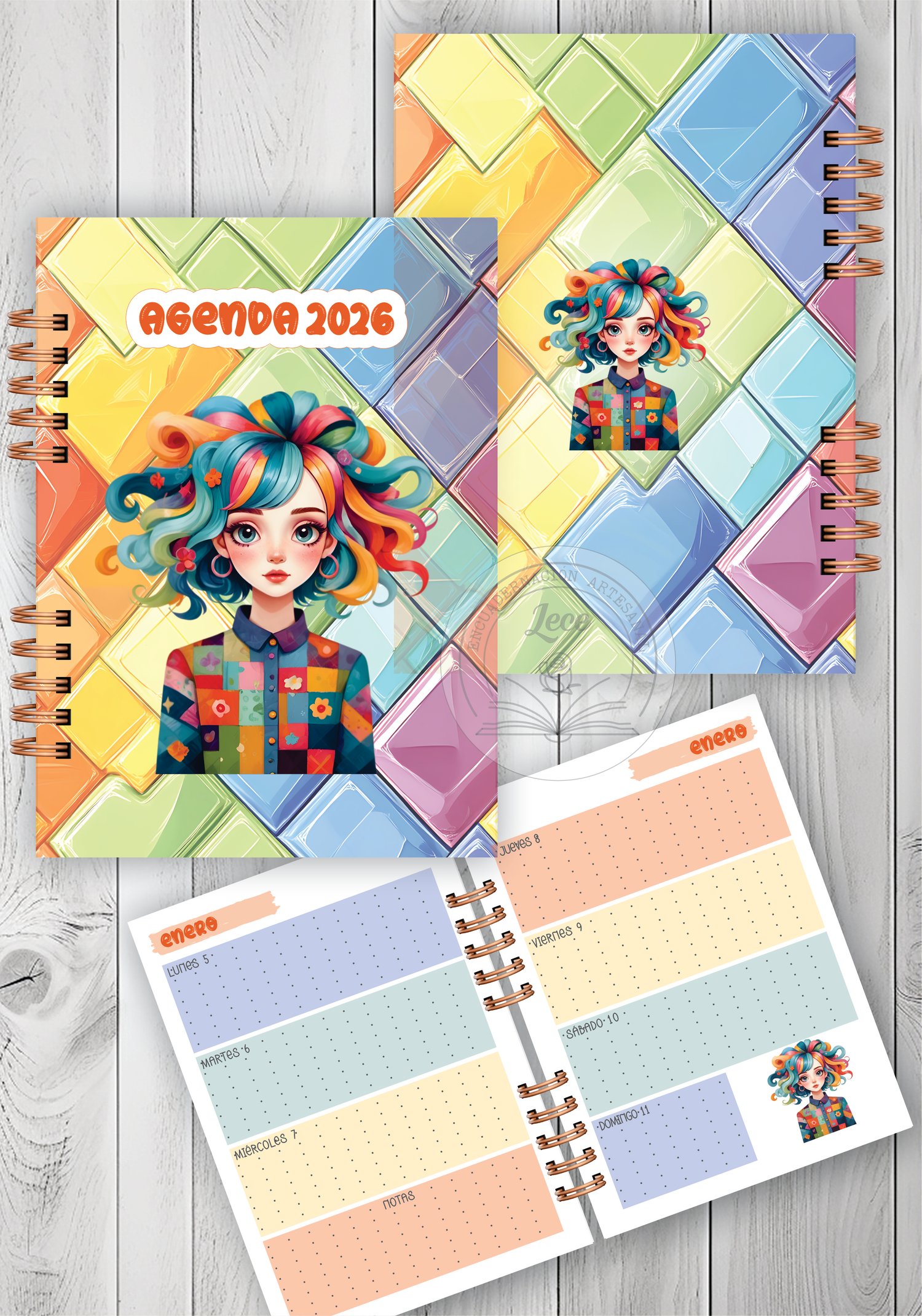 Pack imprimible Agenda 2026 semana a la vista Chicas Patchwork 3/4