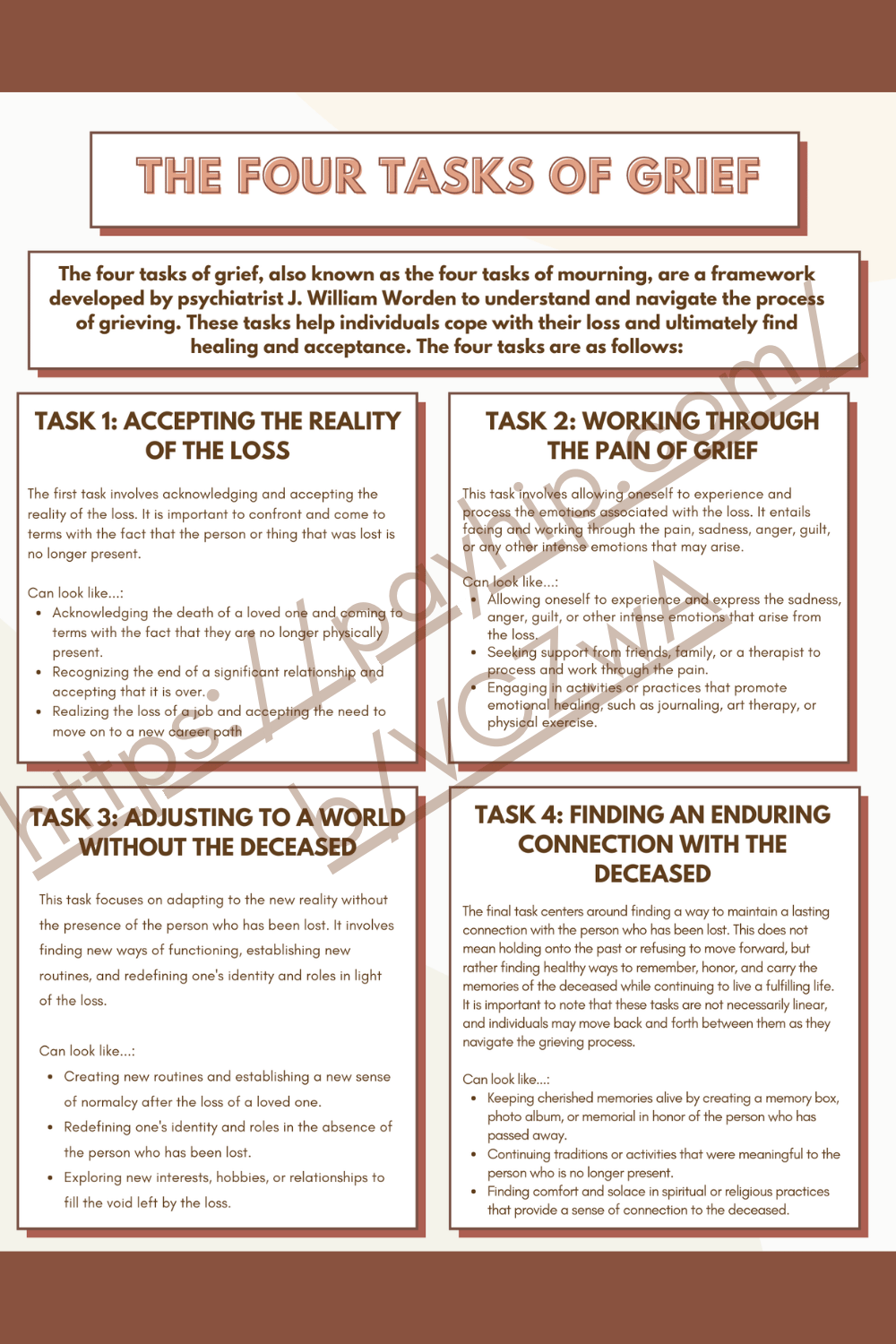 Grief Therapy Worksheets: Four Tasks of Grief (Counseling Tools)