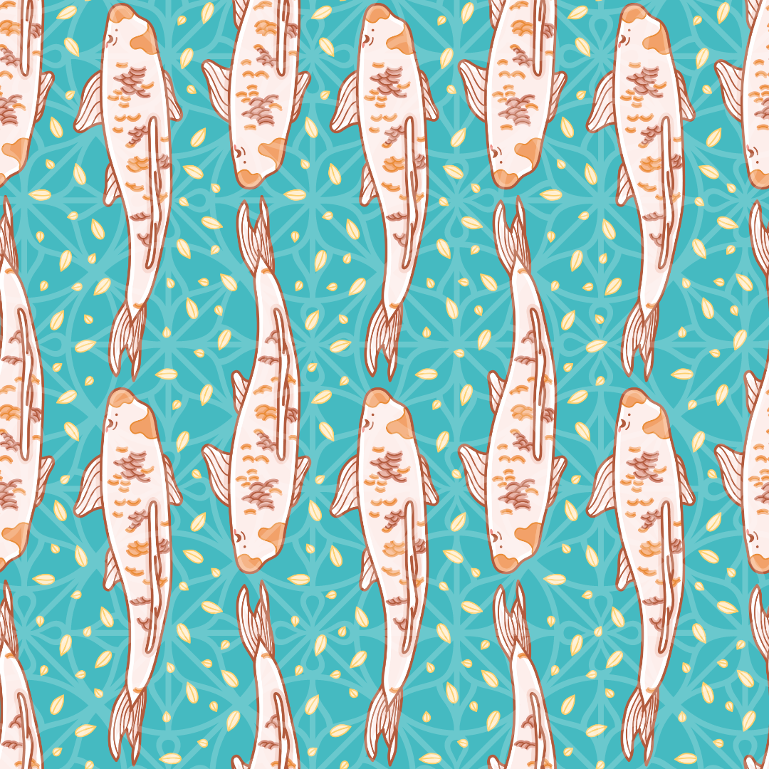 Seamless carp fish pattern vector. Cute koi pond illustration background.