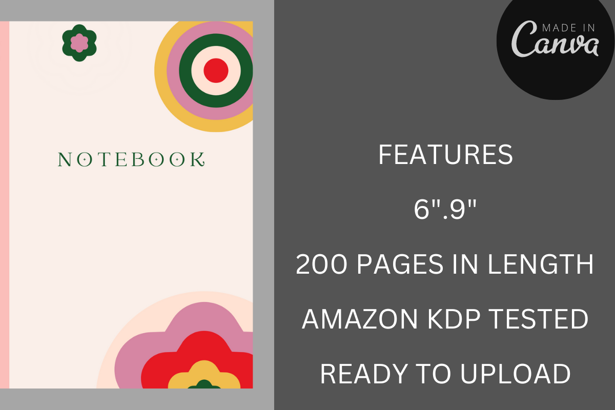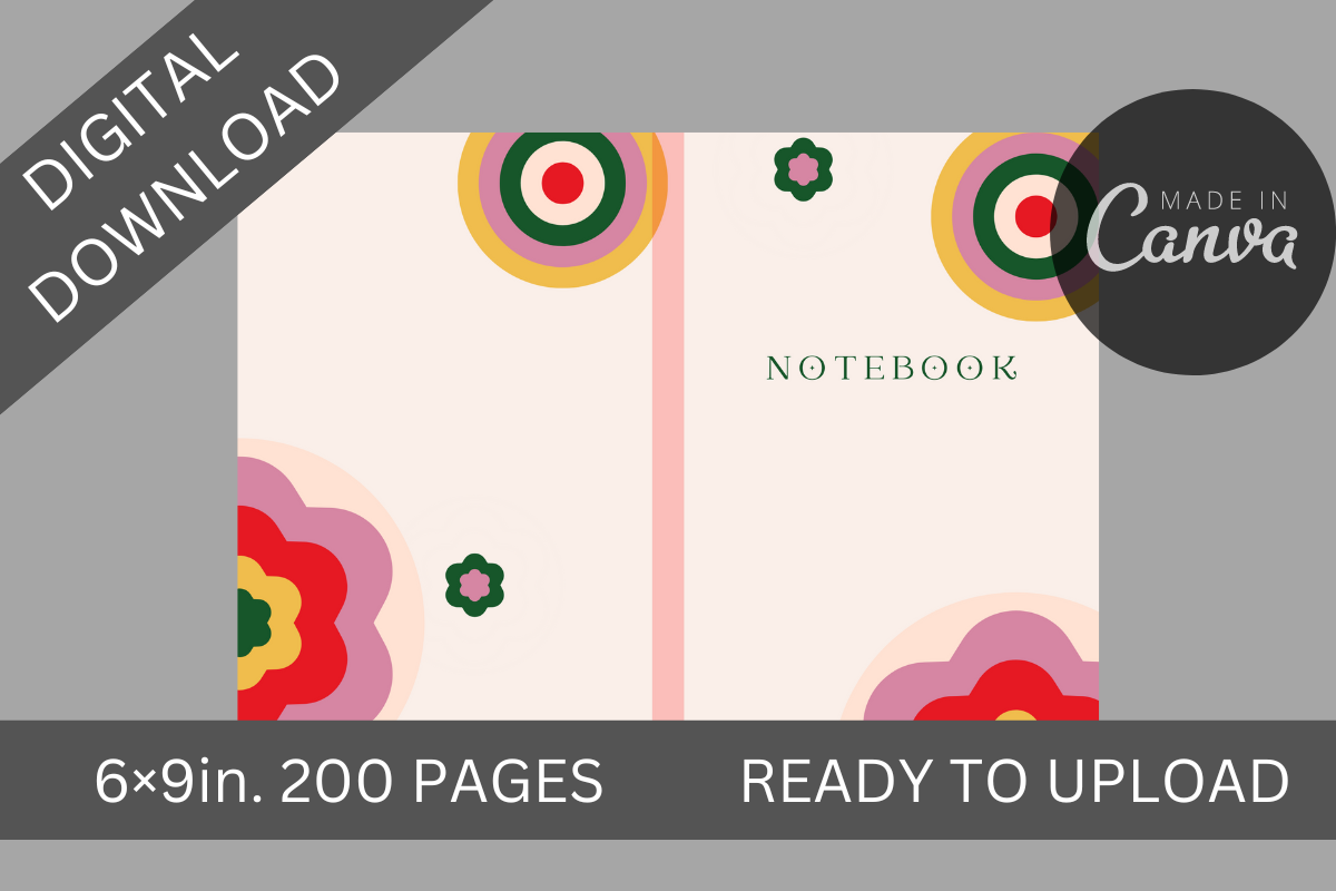 FLOWER KDP LINED PAPER COVER, LOW CONTENT BOOK COVER FOR KDP READY UPLOAD, FLOWER KDP JOURNAL PAPER, FLOWER JOURNAL NOTEBOOK MOCKUPS, KDP CANVA NOTE