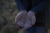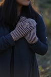 The mittens are written for three sizes; hand circumference is measured around the widest part of the hand, above the thumb. If between sizes, choose the smaller size. Sample shown is 6.25” circumference on a 7” circumference hand.