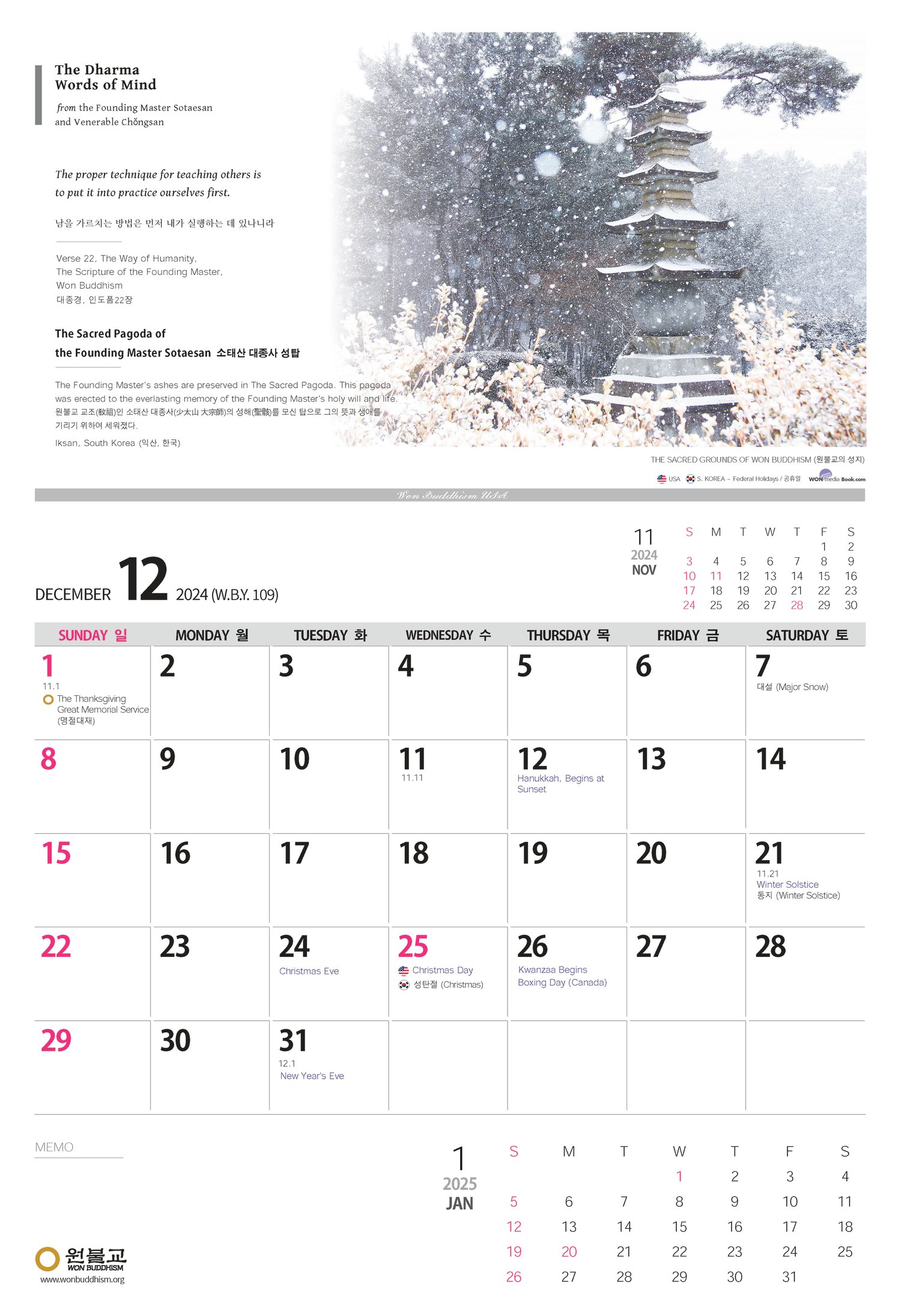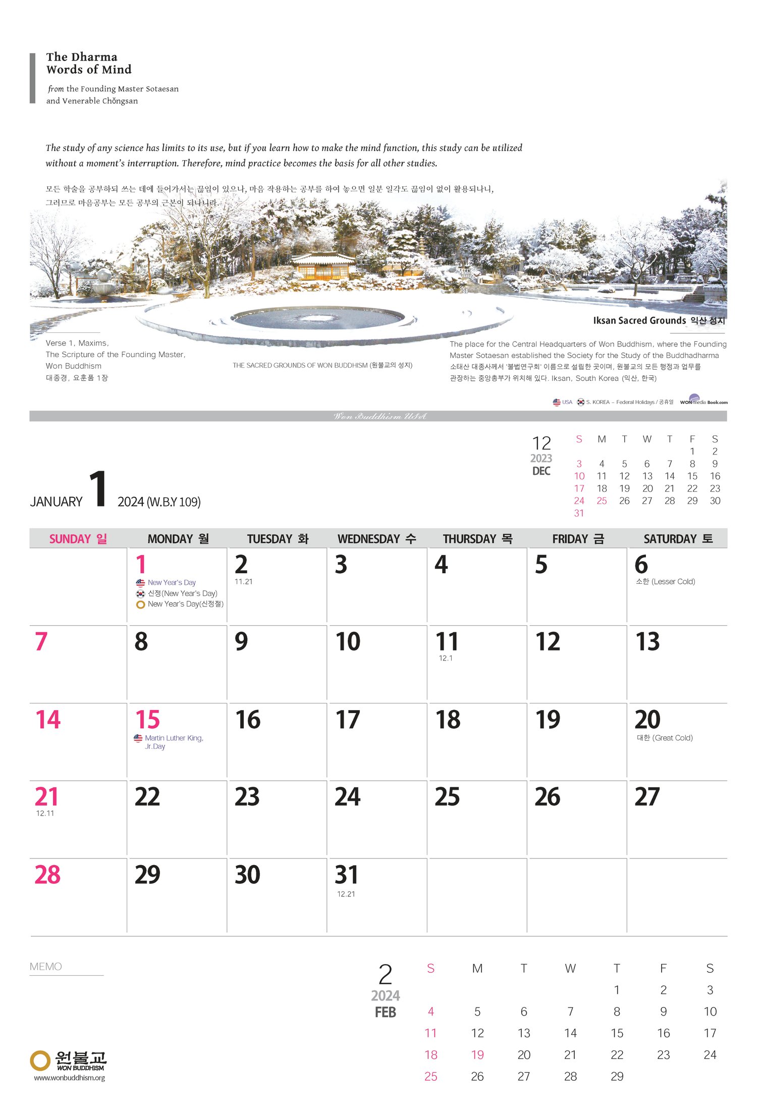 Wall Calendar 2024 _ Won Buddhism in the Americas