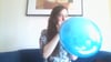 Isa challenges herself to blow to pop a blue balloon. The loud BANG gives her a good fright.