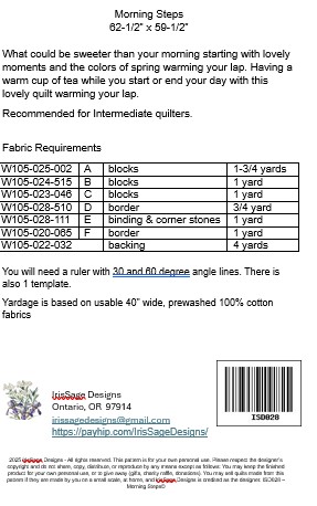 What could be sweeter than your morning starting with lovely moments and the colors of spring warming your lap. Having a warm cup of tea while you start or end your day with this lovely quilt warming your lap..