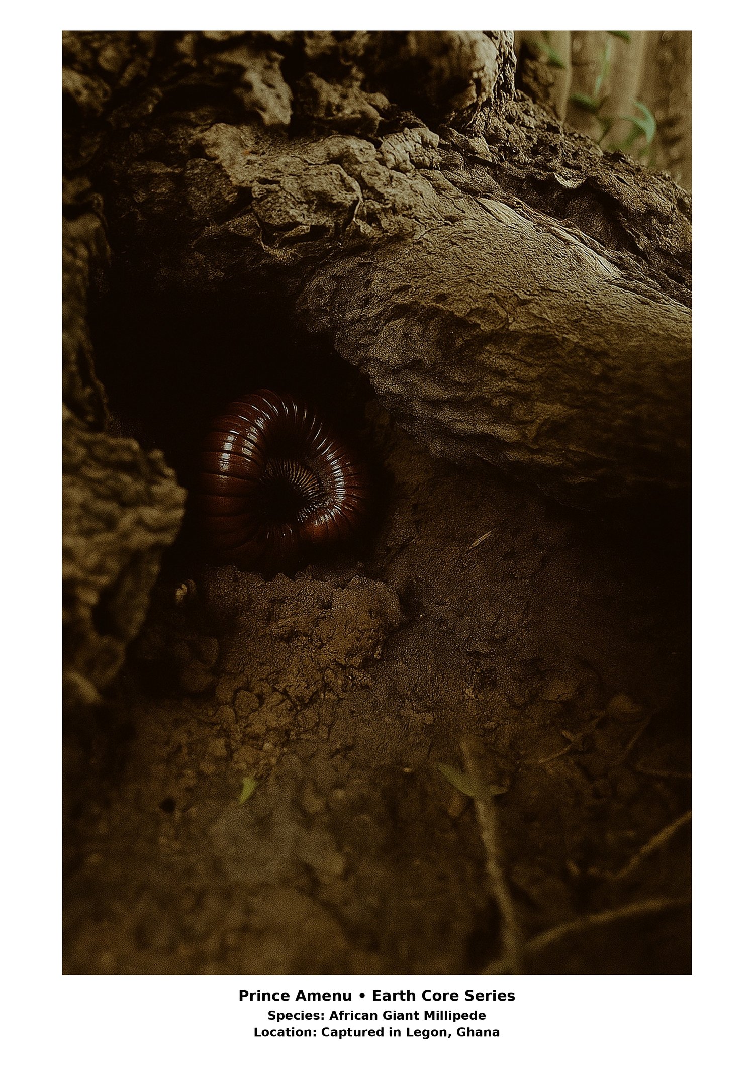 The Earth Core Series is Prince Amenu’s artistic exploration of the hidden worlds beneath our feet and within our environment. Through photography, the series reveals the overlooked details of nature soil, roots, insects, and textures that form the foundation of life itself.