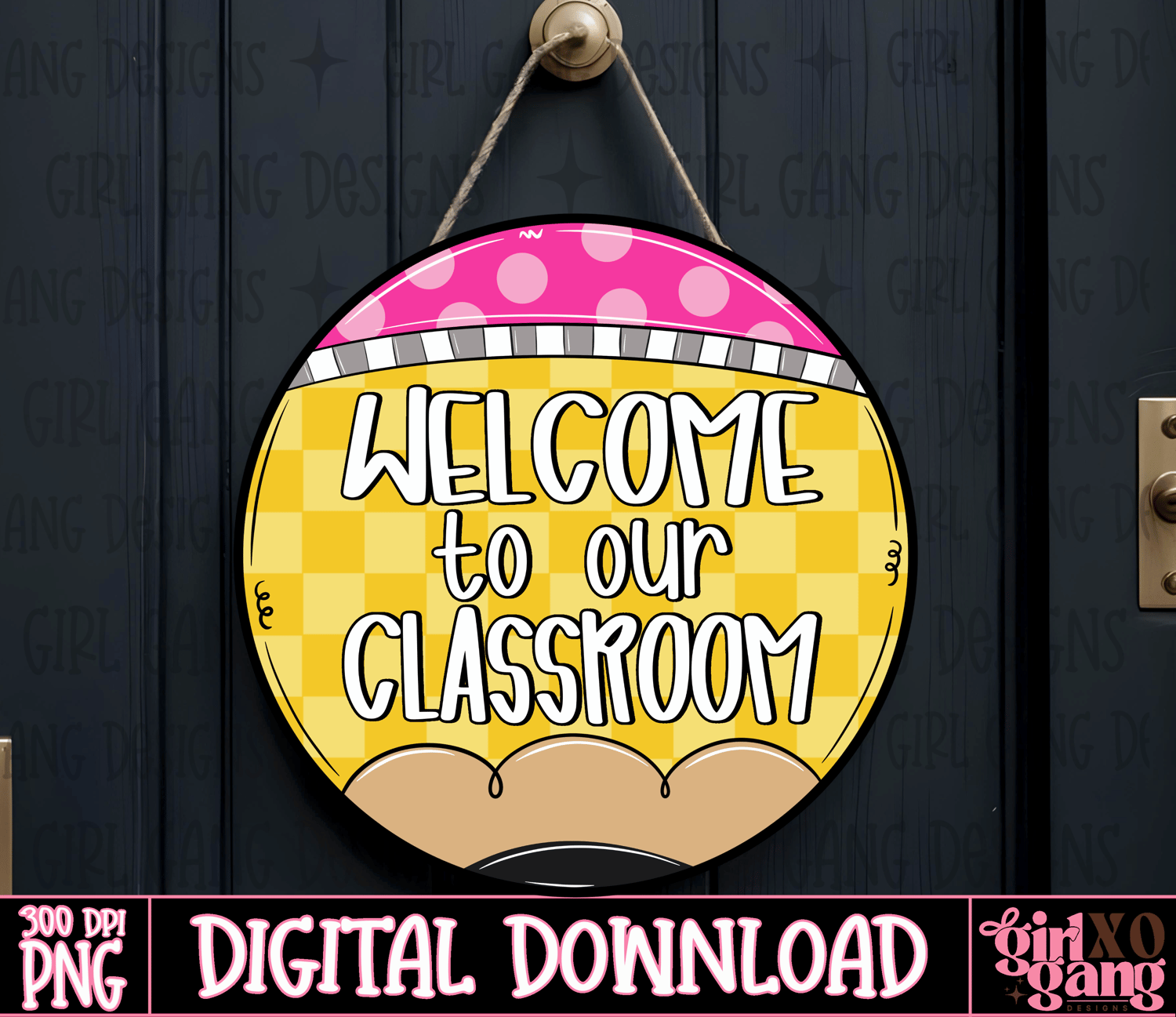 Welcome to our classroom round door sign pencil doodle theme png
