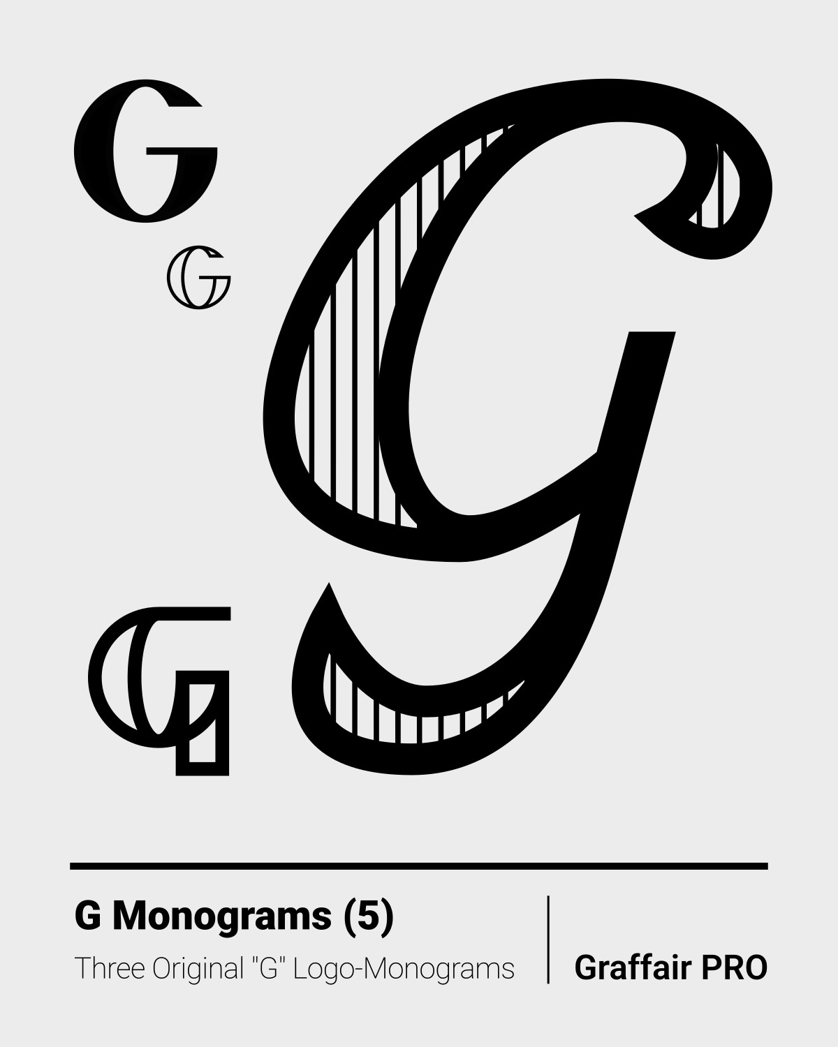 G Monograms (5): The 5th set of three original "G" logo monograms, selected from a total of 33, included in the "1050 SVG Monograms" super package, which also features an Index catalog.