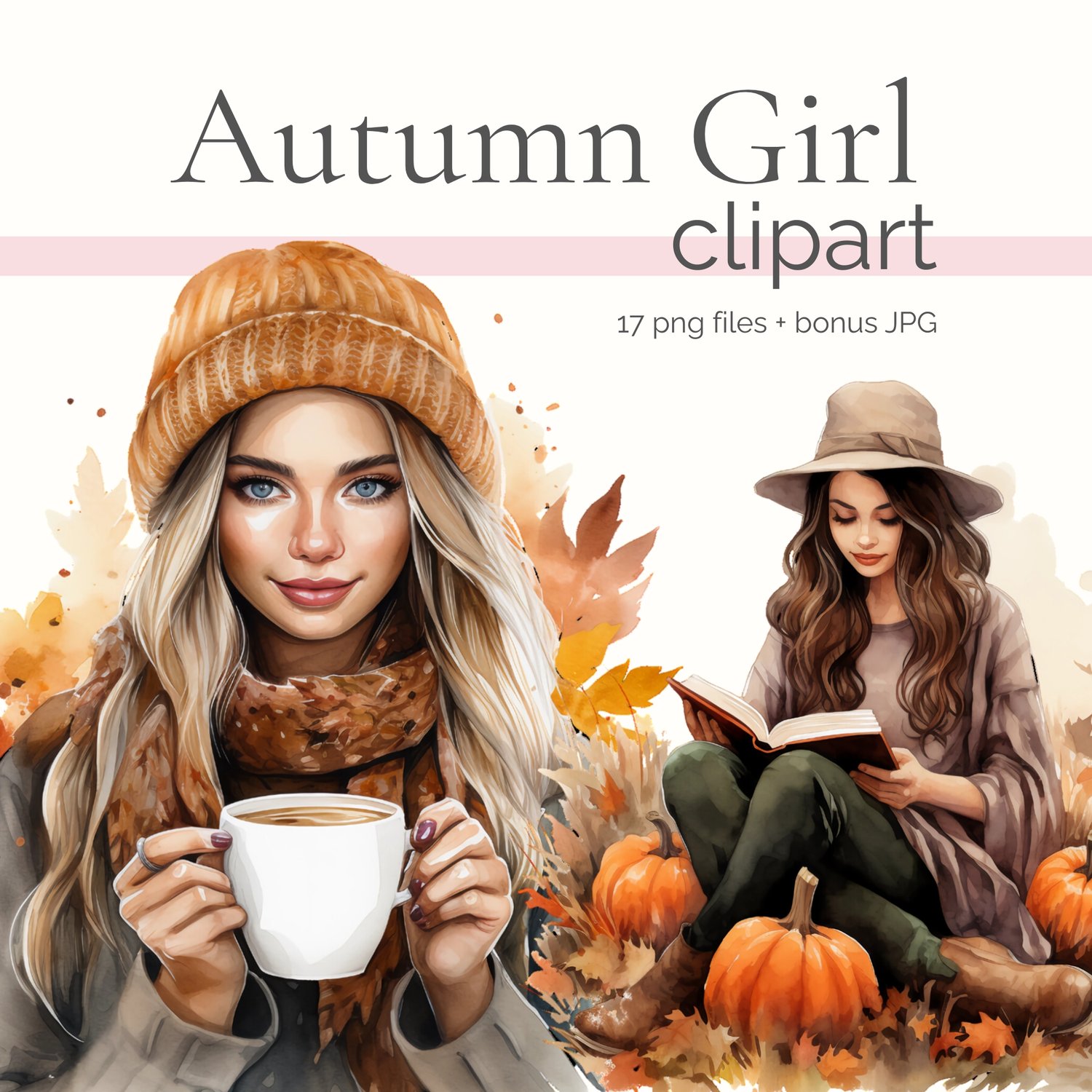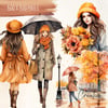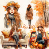 Watercolor Autumn Girl Clipart Bundle, Cozy Fall PNG, Woman Clipart