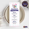 - Customizable Design: Tailor the menu with your child's name and menu details using Canva. You can edit, add, and remove text, change fonts and colors, move and resize text boxes, and add your own images. Note that you cannot change the graphics included in the design.