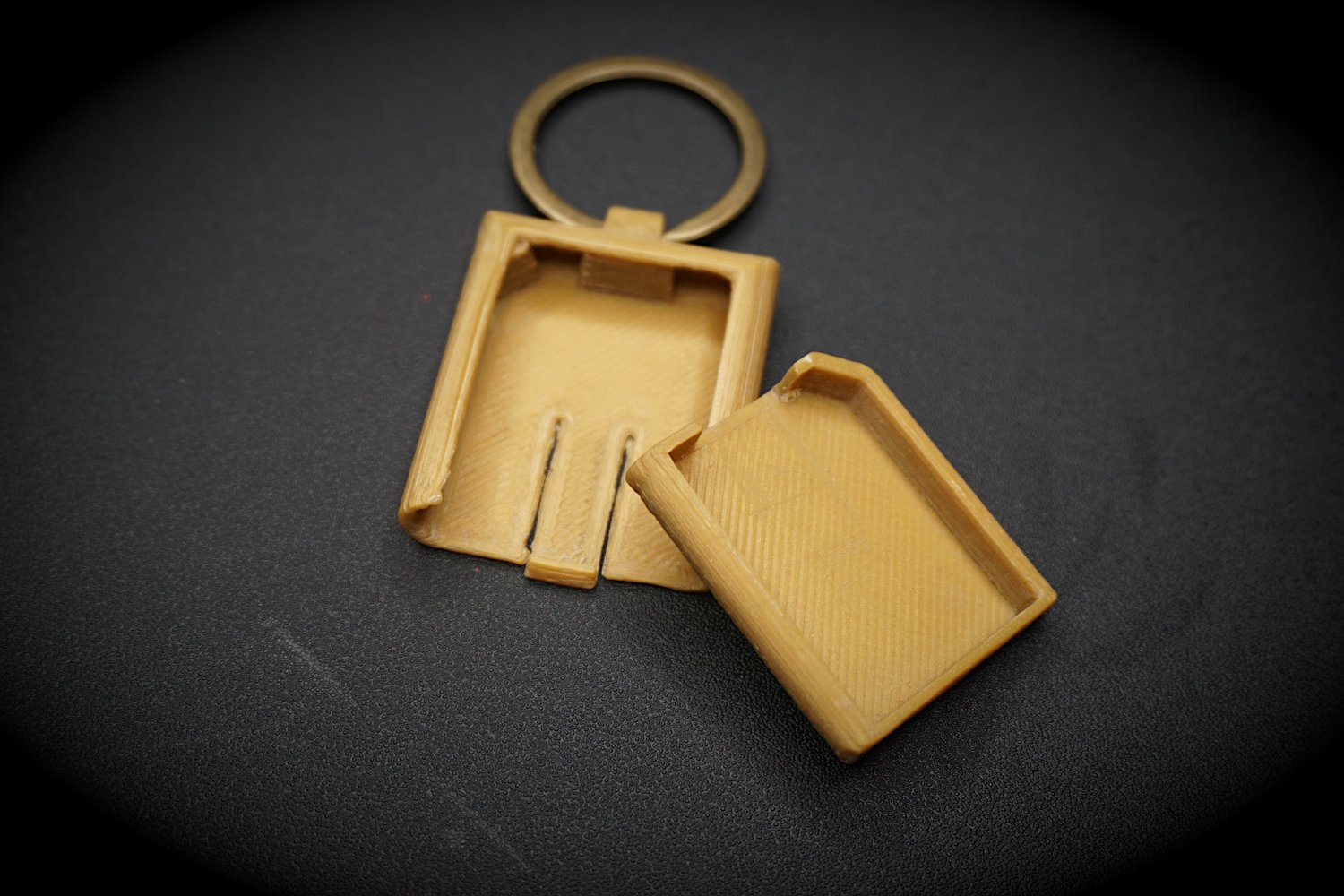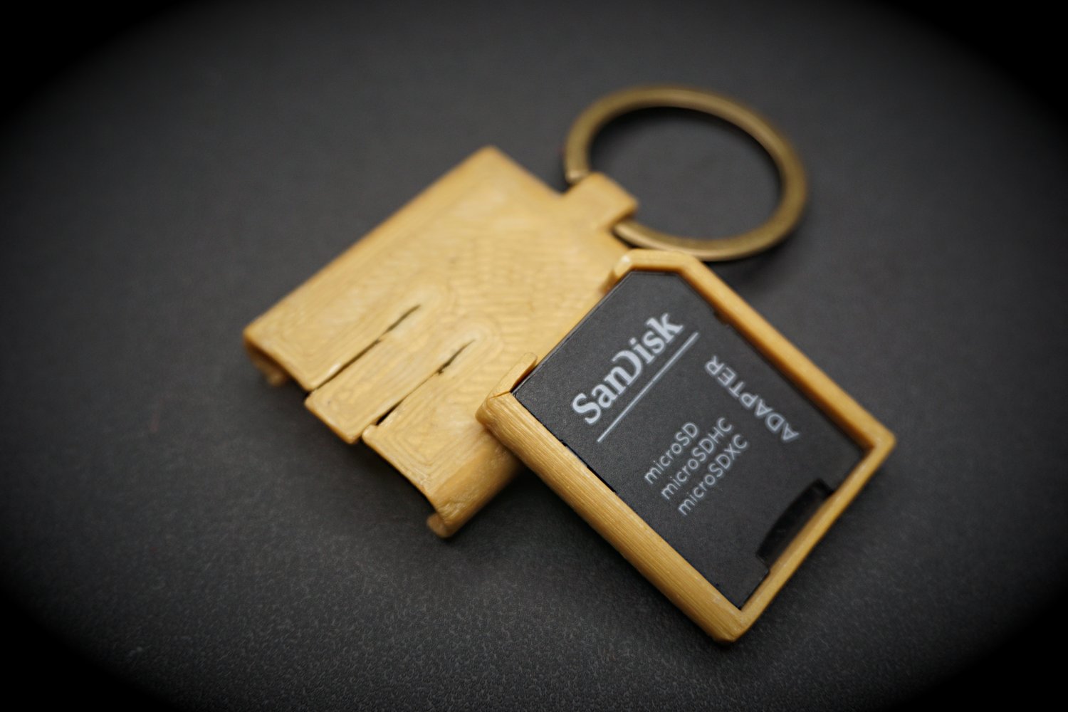 This is a SD card holder that holds up to two standard sd cards. It is small enough to carry as a keychain so you have easy access to your back up memory cards when traveling.