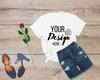 White T-shirt Mockup, Women T-shirt Mockup, Flat Lay White T-shirt Image | Digital Romantic Mockup | Instant Download Women Illustration