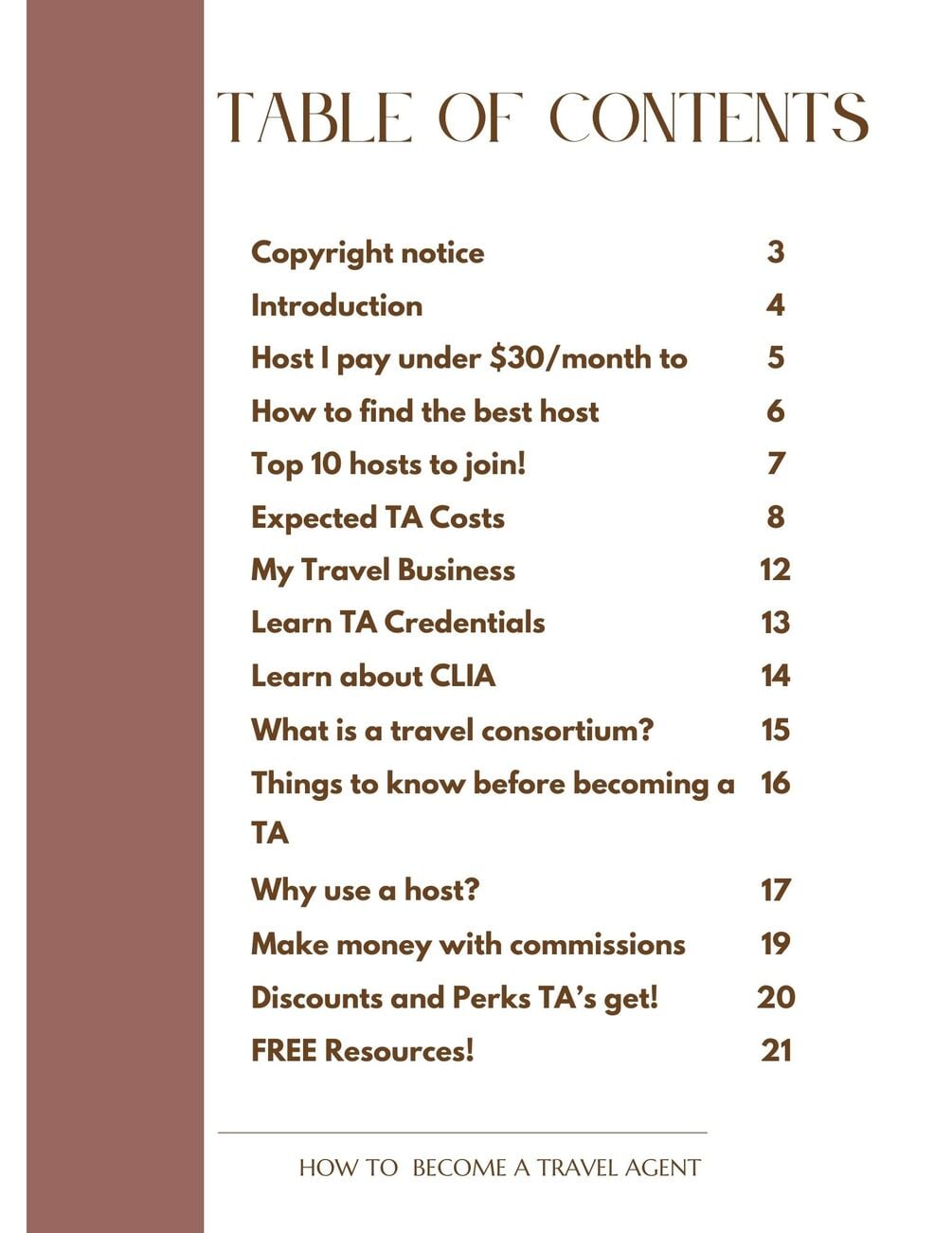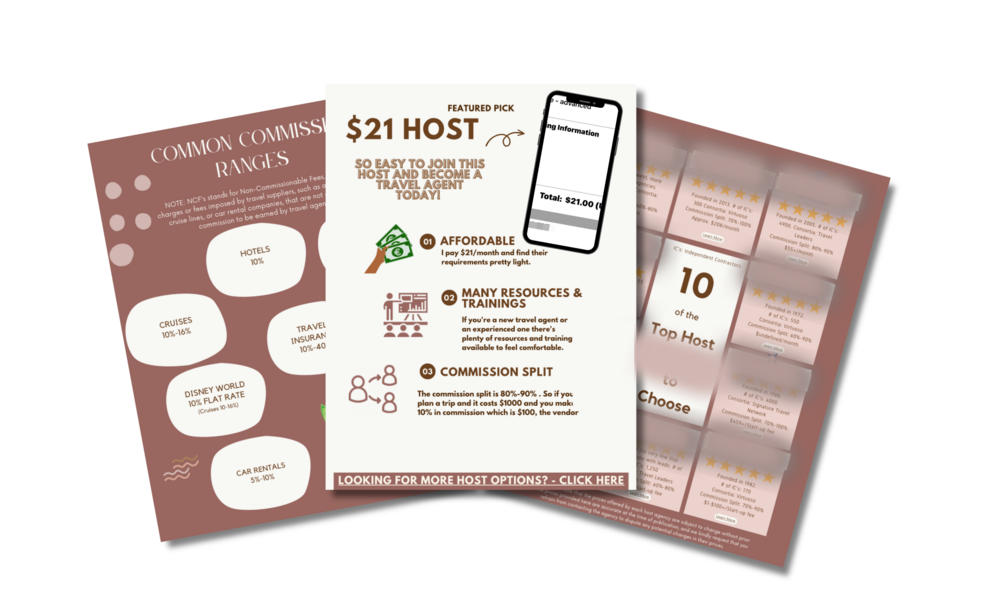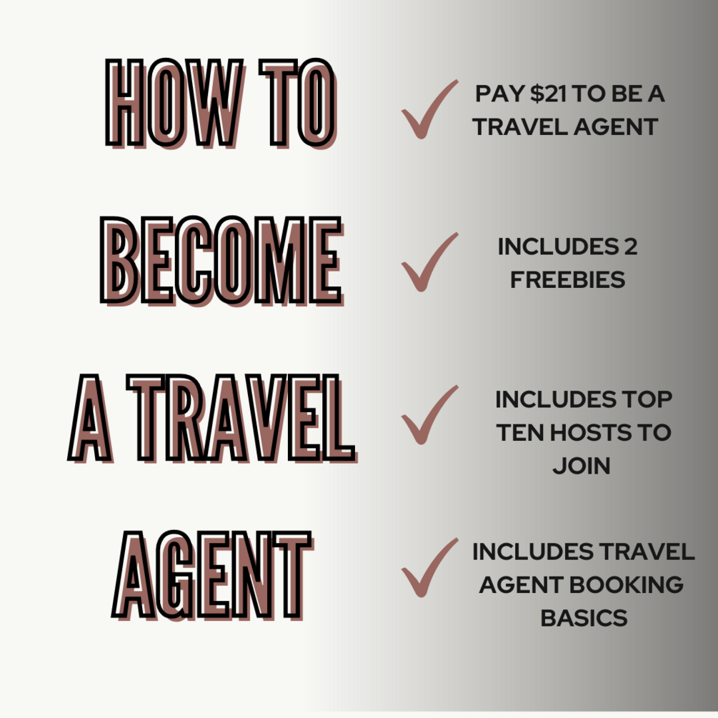 Whether you’re passionate about travel, looking to turn your love for travel into a thriving business, or someone seeking a rewarding career change, this Ebook is your ultimate guide. Inside its digital pages, you'll unlock a treasure trove of industry secrets, insider knowledge, and expert strategies that will set you apart in the competitive travel industry. Get access to the host I pay $21 a month to, the Top 10 other hosts you can join, and 2 additional FREE guides to help you on your travel agent journey.