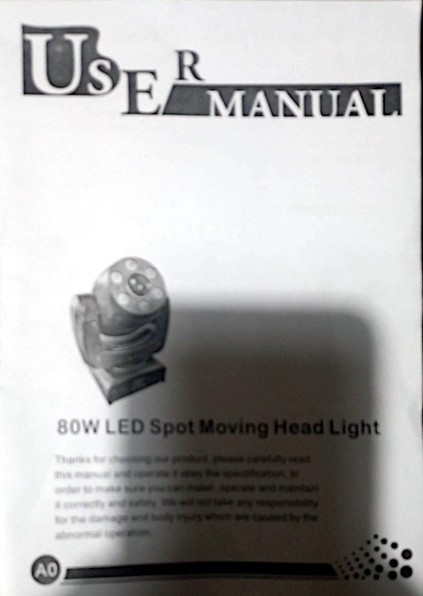 * El manual dice: "80W Spot Moving Head With Wash Light" y es de 16CH.