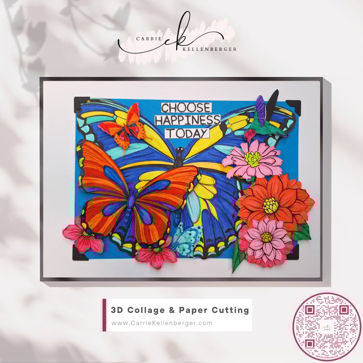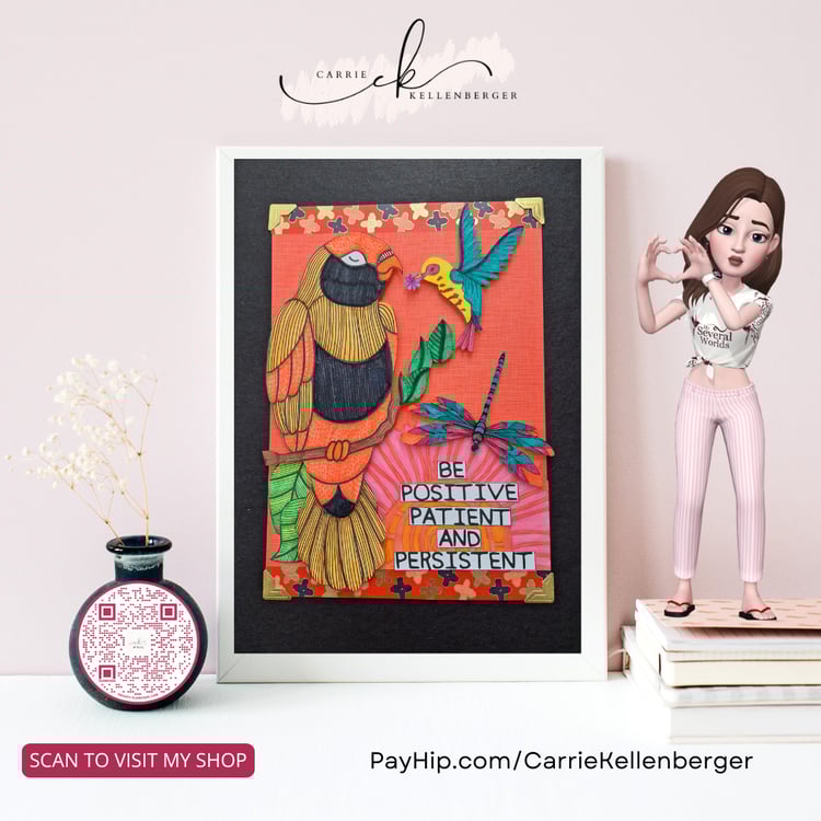 My paper cutting technique adds an extra 3D dimension of beauty and intricacy to each design, making my collages a delightful keepsake.They’re meant to brighten any space: an office cubby, a senior’s bedside, a child’s room, a sunny kitchen, or anywhere your heart desires.