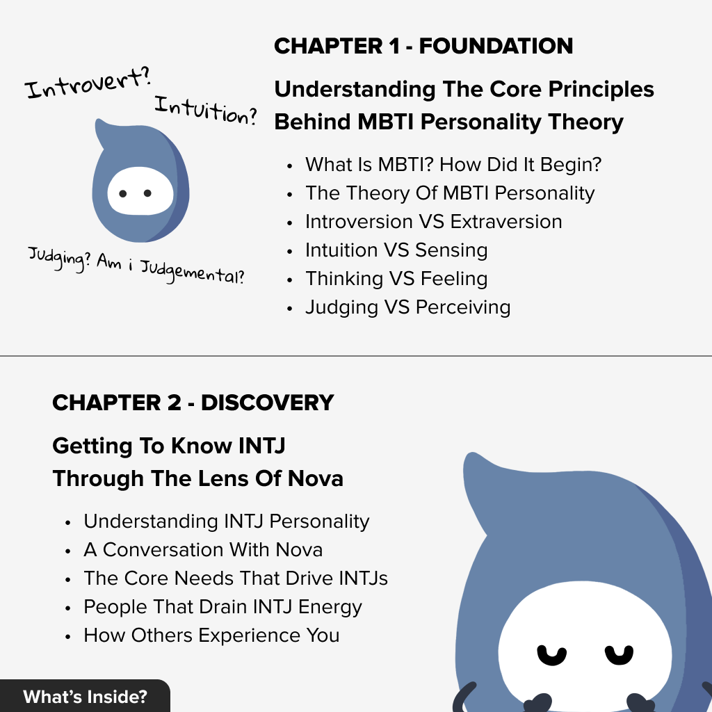 Designed specifically for the INTJ's mind, this self-discovery guide breaks down the inner structure behind your thoughts, emotional patterns, strengths, blind spots, and growth path with depth, clarity, and real-world application.