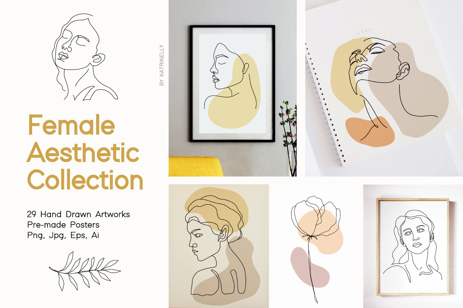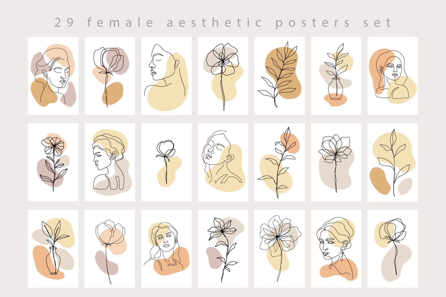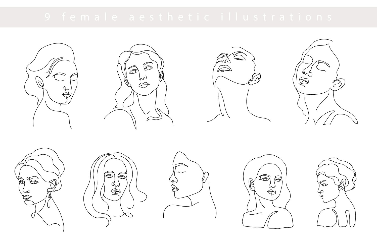 I'm glad to Introduce you my hand drawn elegant and minimal collection - Female Aesthetic Portraits and Floral drawings collection.