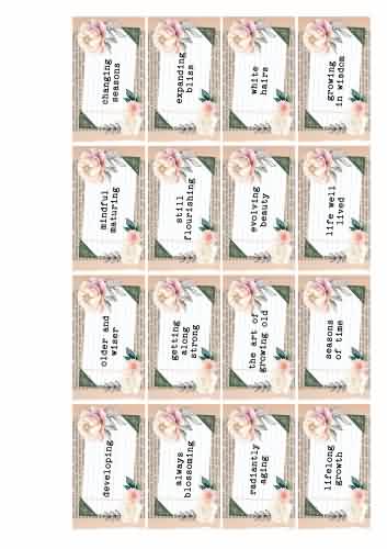 Host your own women’s WELLNESS PARTY with these delightful sheets of games and activities on the topic of embracing the passage of time.