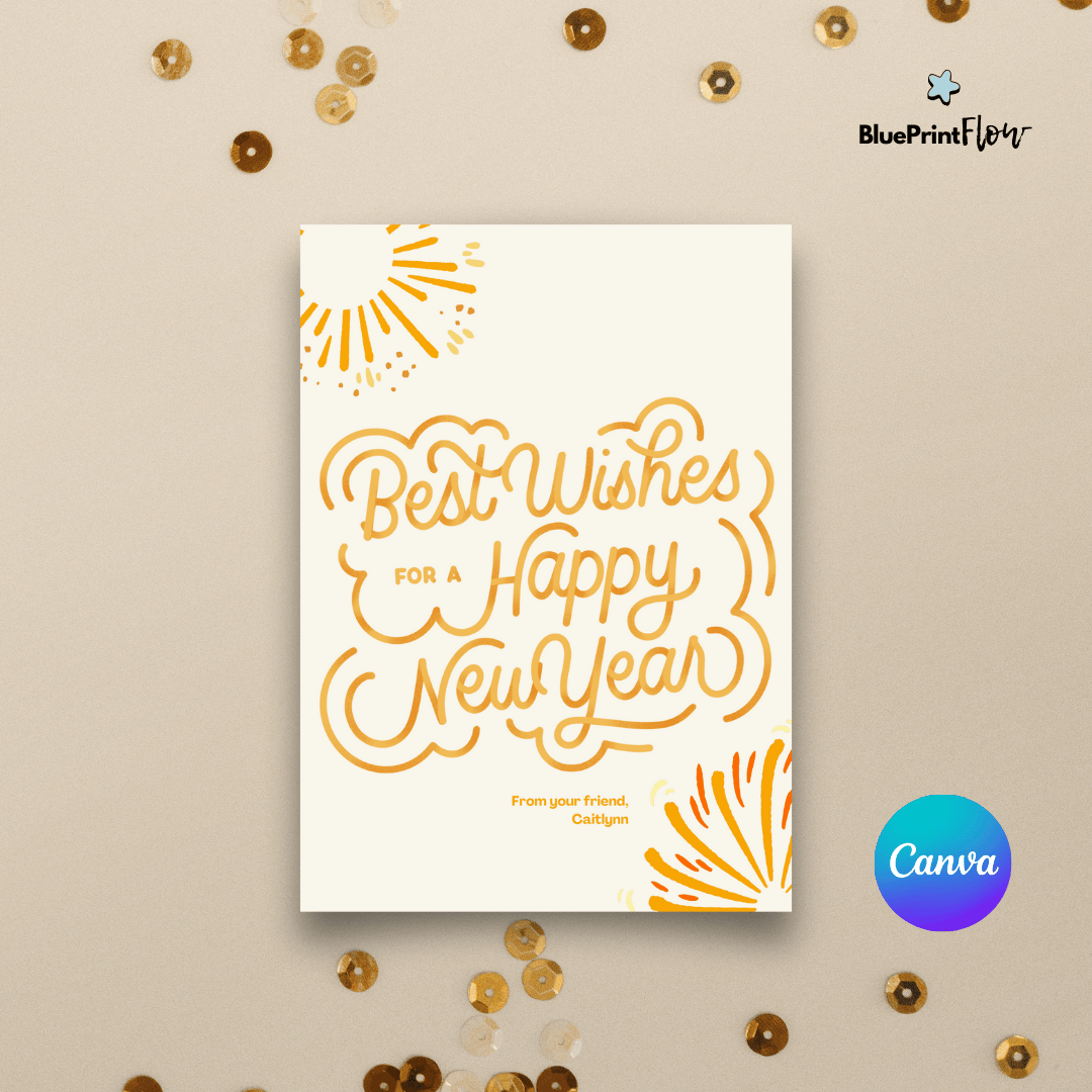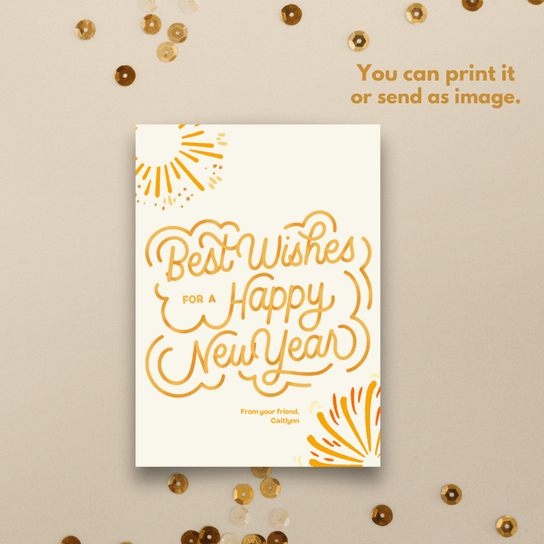 Make this New Year's extra special with our fully customizable Canva template. With its eye-catching design and editable elements, you can create unique and personalized greetings for everyone on your list. Simply add your own text, choose your favorite colors, and print!