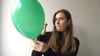 Nance was a bit scared to pop the balloon. This is her first attempt at popping with a pin.