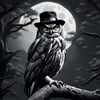 Black and White Mysterious Owl with Fedora Hat - Digital Art