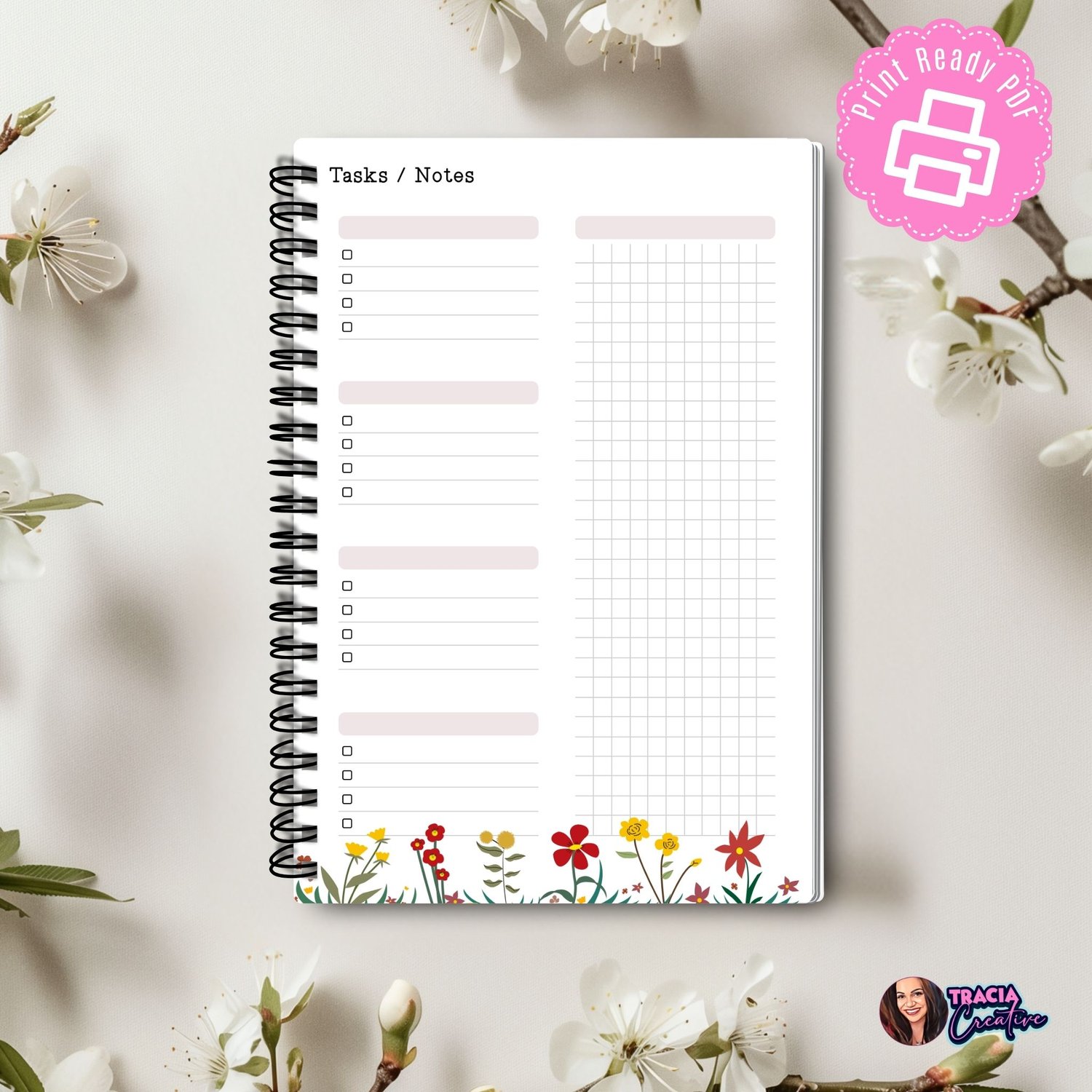 Introducing the Tasks/Notes Planner Insert from Tracia Creative, your ultimate tool for seamless organization and effortless note-taking. This A5, 2-page planner insert, adorned with a delicate floral design on a pristine white background, is the perfect canvas for your daily to-dos and creative musings. With its instant download feature, you can begin to bring order to your chaos in moments.