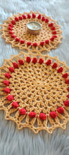 " Made with bulky yarn and 7 mm hook and it turned out to be a lovely 16" mat that fits my sidetable perfectly" - Manasa