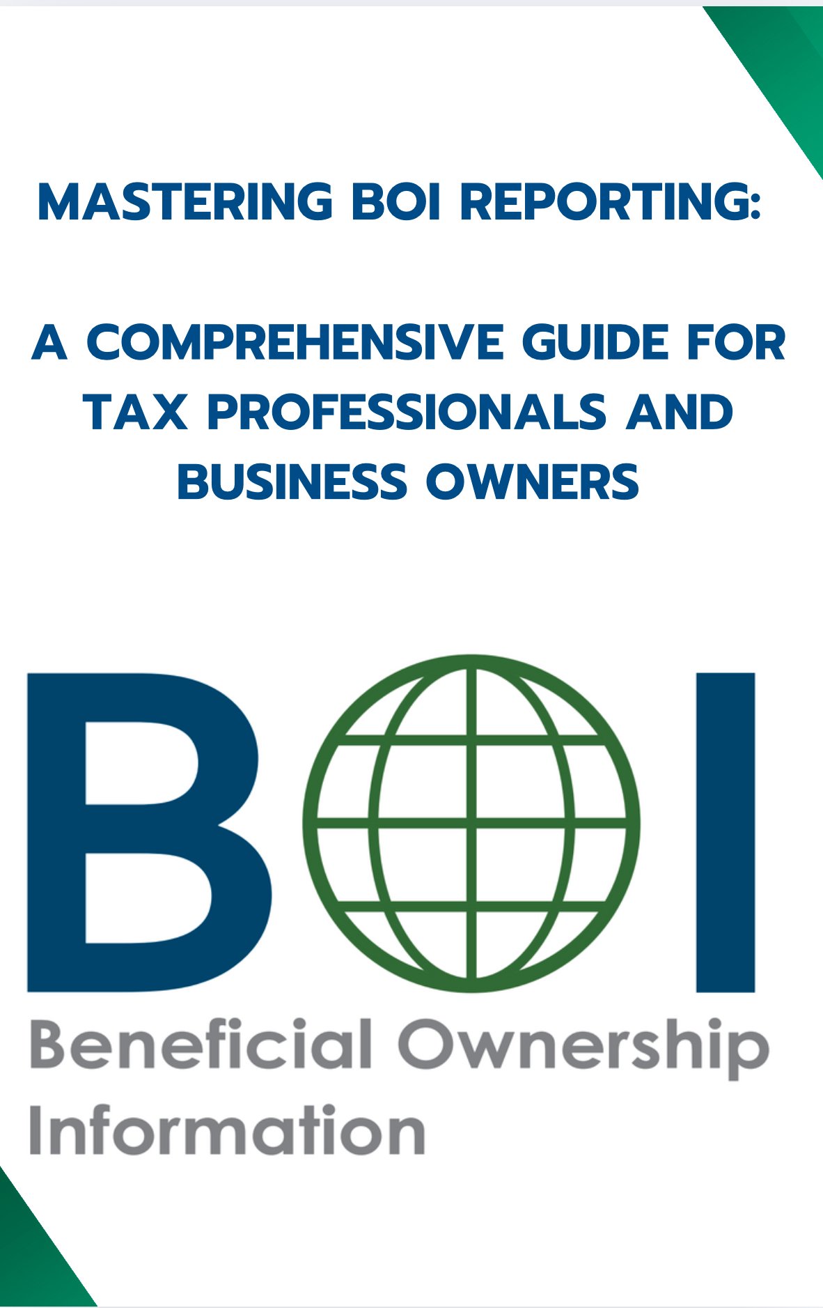 “Mastering BOI Reports: A Guide for Business Owners and Tax Professionals” is your essential resource for understanding and navigating Beneficial Ownership Information (BOI) reporting. This comprehensive guide explains the importance of BOI compliance, the penalties for non-compliance, and provides clear, step-by-step instructions for accurate filing. Whether you’re a business owner seeking clarity or a tax professional advising clients, this guide equips you with the knowledge and tools to stay compliant and protect your business.