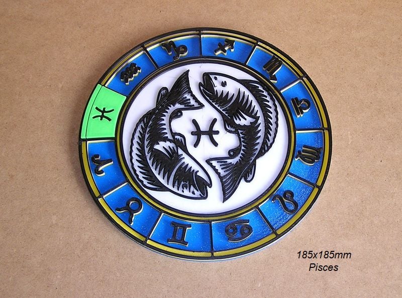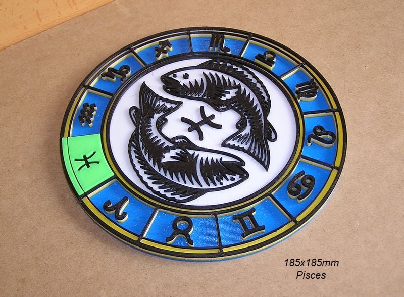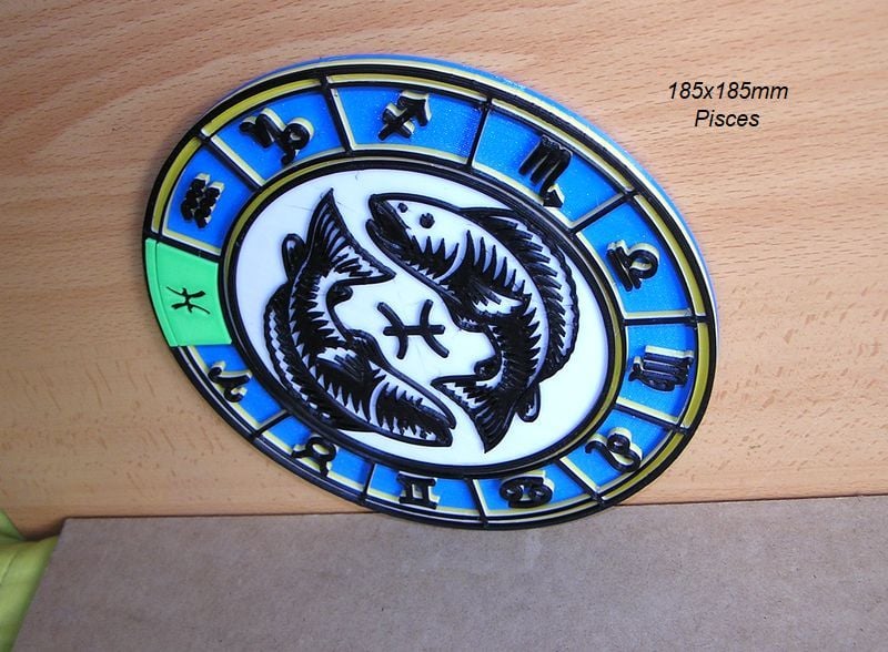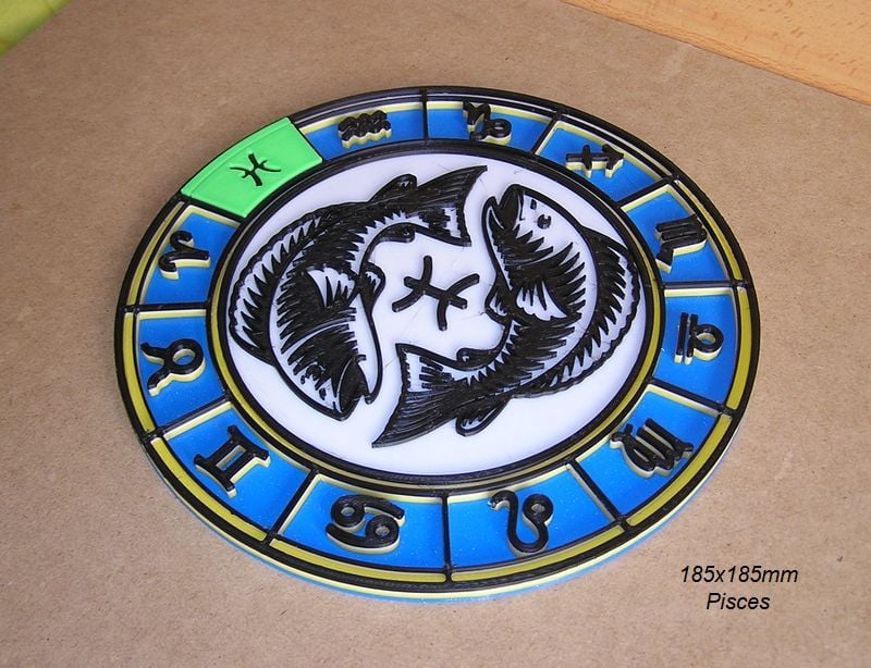 Logo, silhouette, horoscope, Pisces, these STL and Gcode files have been created to be printed in various colors with any FDM type printer. The color changes have been made with the Elegoo Neptune 3 Pro printer, but they can be printed on any printer.