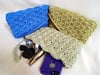 The classic shell pattern has new life and flair when made in fun colors with this different and interesting yarn. The clutch is perfect for use as a make-up bag, storing those smaller items that roam around the interior of your purse like keys, chapstick, and gum. It's also large enough to carry as a clutch if you want to travel light.