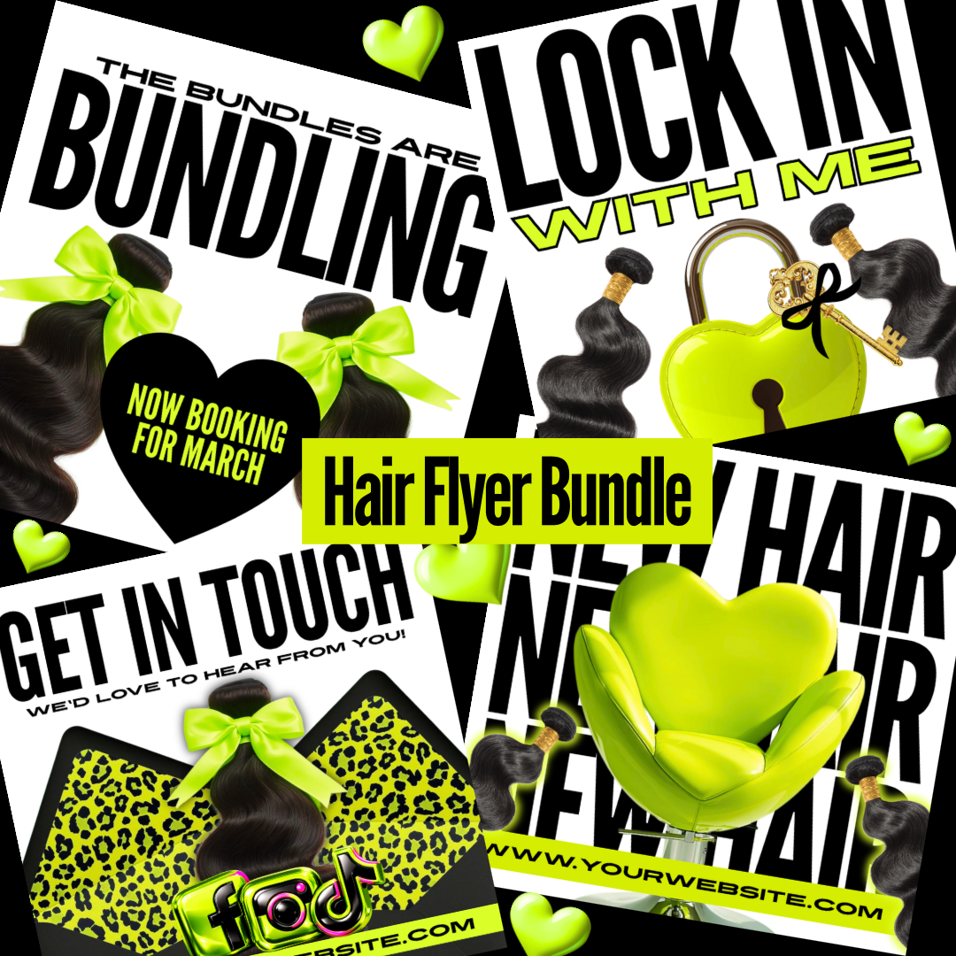 If you’re a hairstylist or hair brand ready to turn heads and lock in bookings, this 4-flyer hair bundle is a MUST 💚🖤