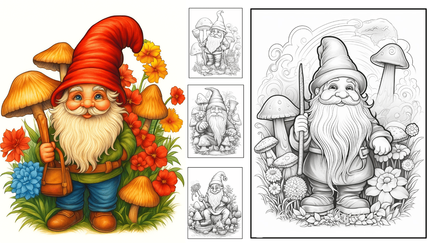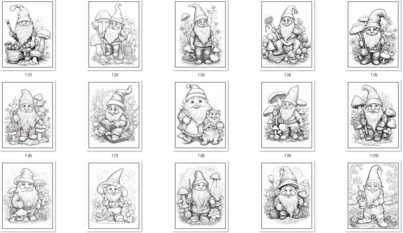 Step into a magical world with this set of 20 Enchanted Gnome Coloring Pages. Each page is carefully illustrated with charming gnome characters surrounded by fantasy gardens, mushrooms, and nature scenes.